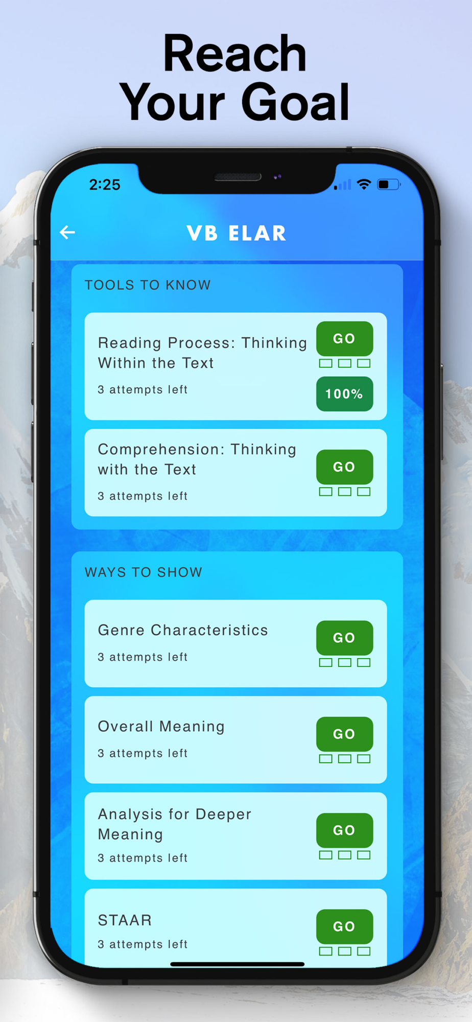 attempts to reach mastery.