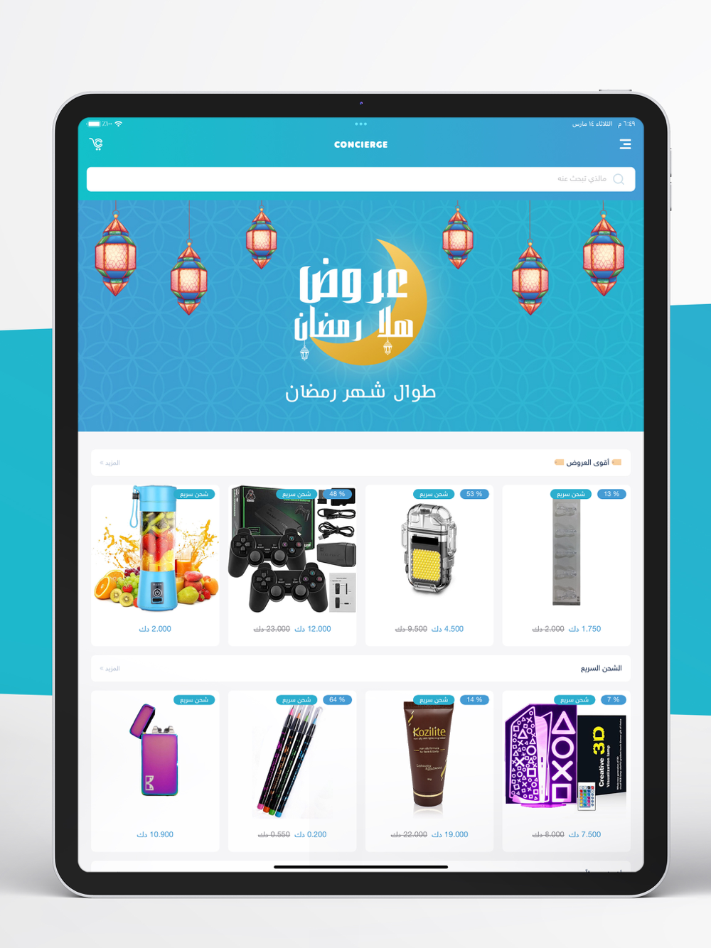 (Concierge) means help and guidance service , the application and the control panel have been designed based on this meaning. It is an electronic shopping and trading platform owned by SA Advertising and Marketing in Kuwait, which allows companies and individuals to sell their products on the website and application seamlessly.