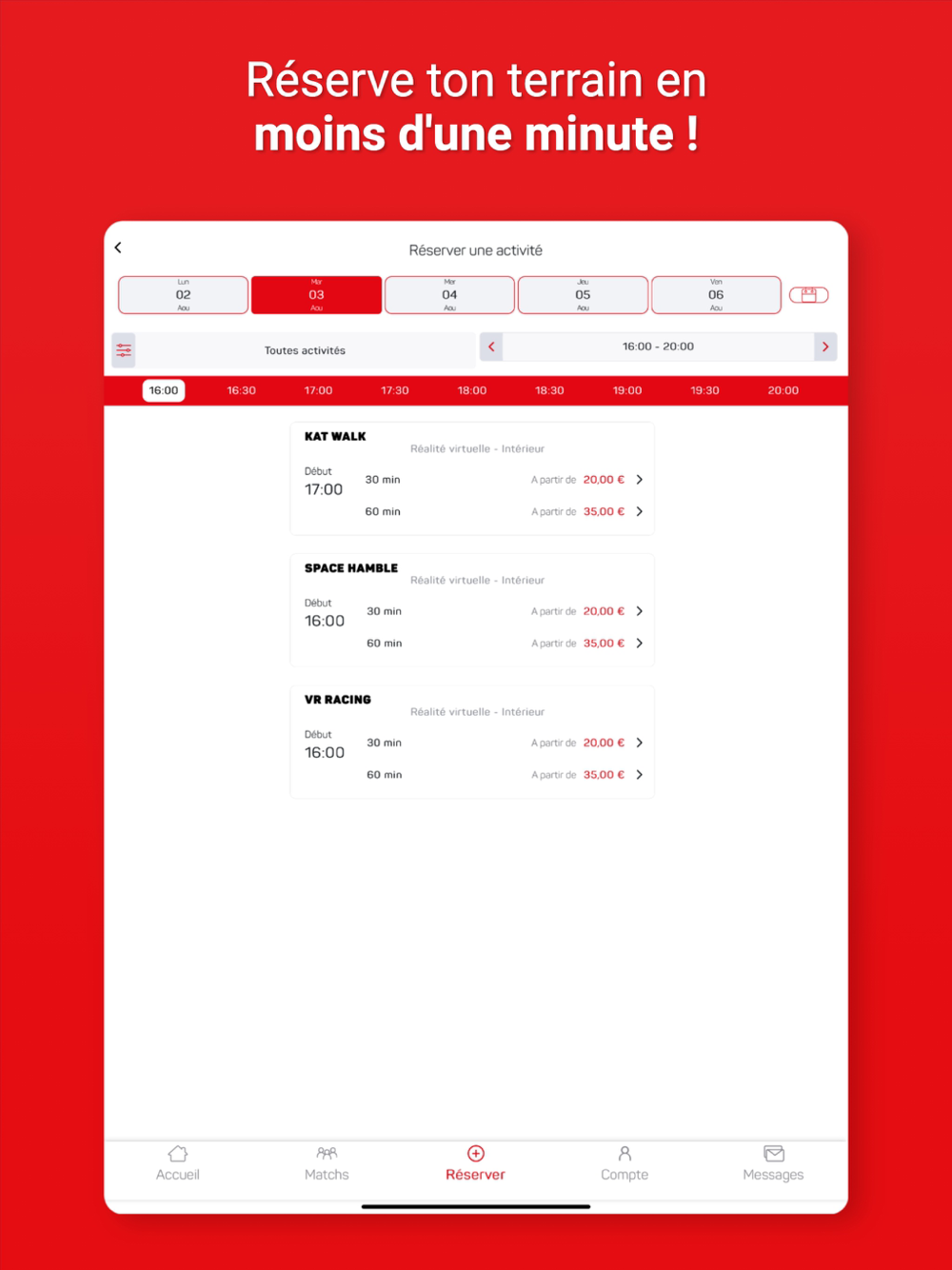 Fini la corvée de réservation ! Avec l'application tu n'as plus qu'à accéder aux créneaux disponibles et à en choisir un. Le club recevra alors automatiquement ta réservation.
