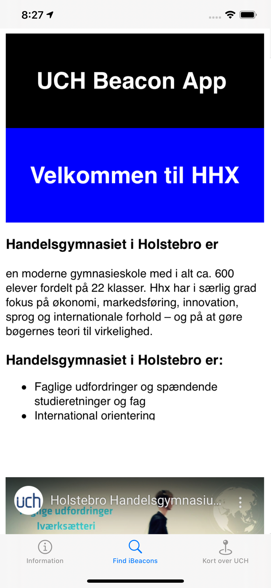 Find studieinformation via beacons placeret på udvalgte steder på HHX i Holstebro.