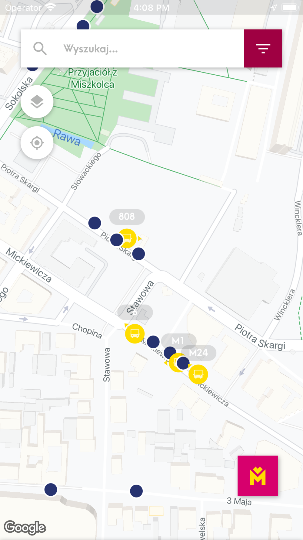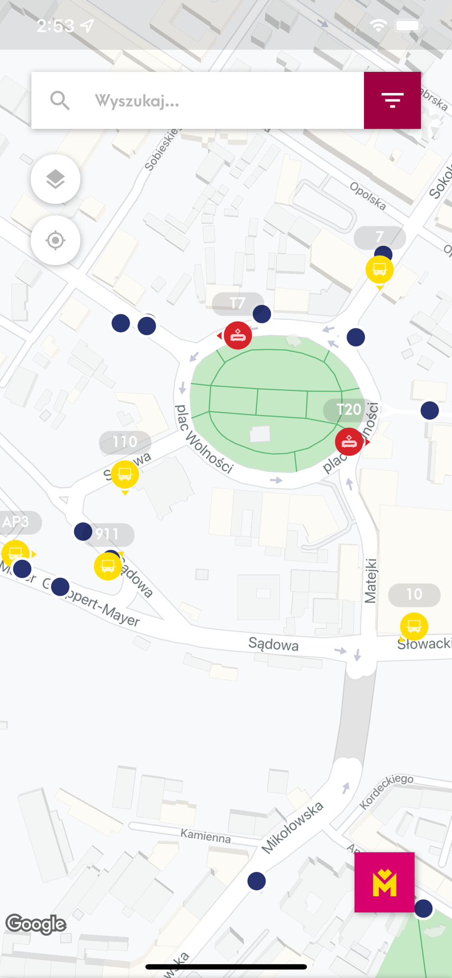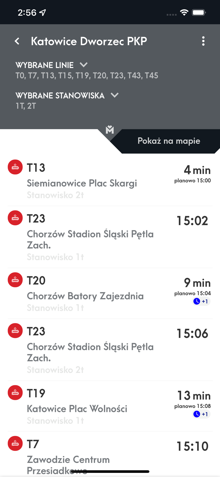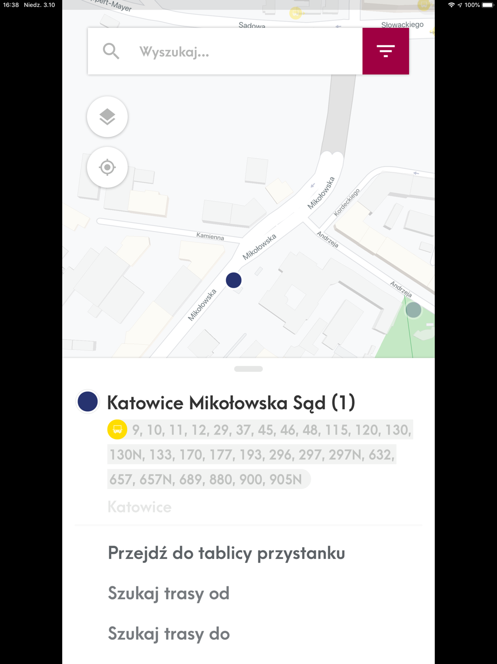 W aplikacji prezentowana jest również bieżąca lokalizacja wszystkich pojazdów na podkładzie mapy obejmującej obszar, na którym organizatorem komunikacji jest Zarząd Transportu Metropolitalnego wyskalowanej i wycetrowanej w oparciu o współrzędne GPS. Pasażer ma możliwość podglądu bieżącej pozycji konkretnego pojazdu lub pojazdów obsługujących wskazaną przez pasażera linię. Możliwy jest również podgląd bieżącej pozycji wszystkich pojazdów na wskazanym obszarze ograniczonym jedynie możliwością czytelnej prezentacji, na ekranie urządzenia, którym posługuje się pasażer. Aplikacja umożliwia śledzenie pozycji wybranego pojazdu wraz z bieżącą informacją na jego temat: nr linii, numer boczny pojazdu, odchyłki od planowanego rozkładu jazdy - prezentowanej w minutach i w odpowiednim kolorze, uzależnionym od tego czy dany pojazd jest przyspieszony, jedzie o czasie czy też jest opóźniony w stosunku do planowanego rozkładu jazdy. Dodatkowo przy śledzonym pojeździe prezentowana jest informacja o kierunku w jakim się porusza (w postaci strzałki przy symbolu pojazdu lub w formie opisowej jako ostatni przystanek w realizowanym kursie), najbliższym przystanku na trasie oraz czasie jaki upłynął od ostatniego logowania pojazdu w systemie.