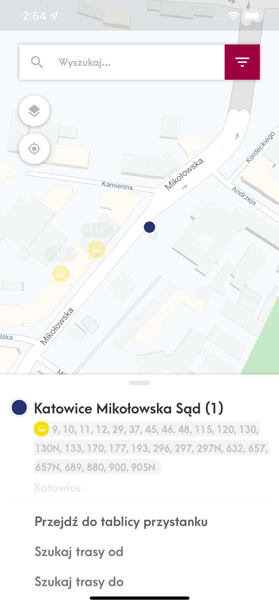 Jedną z funkcjonalności aplikacji jest również szybkie wyszukiwanie przystanków, linii komunikacyjnych oraz ich dodawanie do ulubionych.