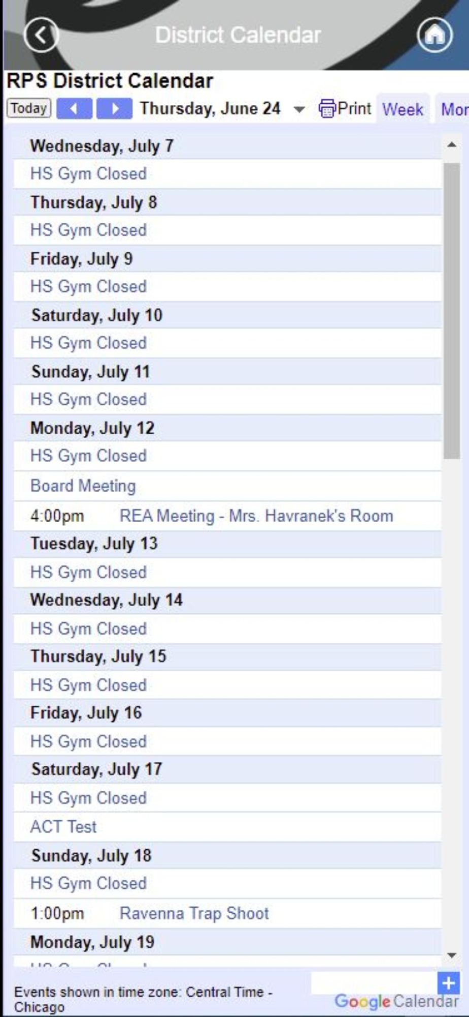 This school app contains the district calendar, menu, social media sites, and links to other often used applications and sites within the Ravenna school district in Ravenna, Nebraska.