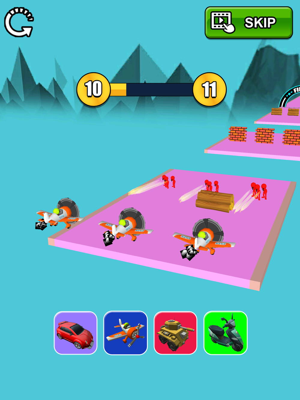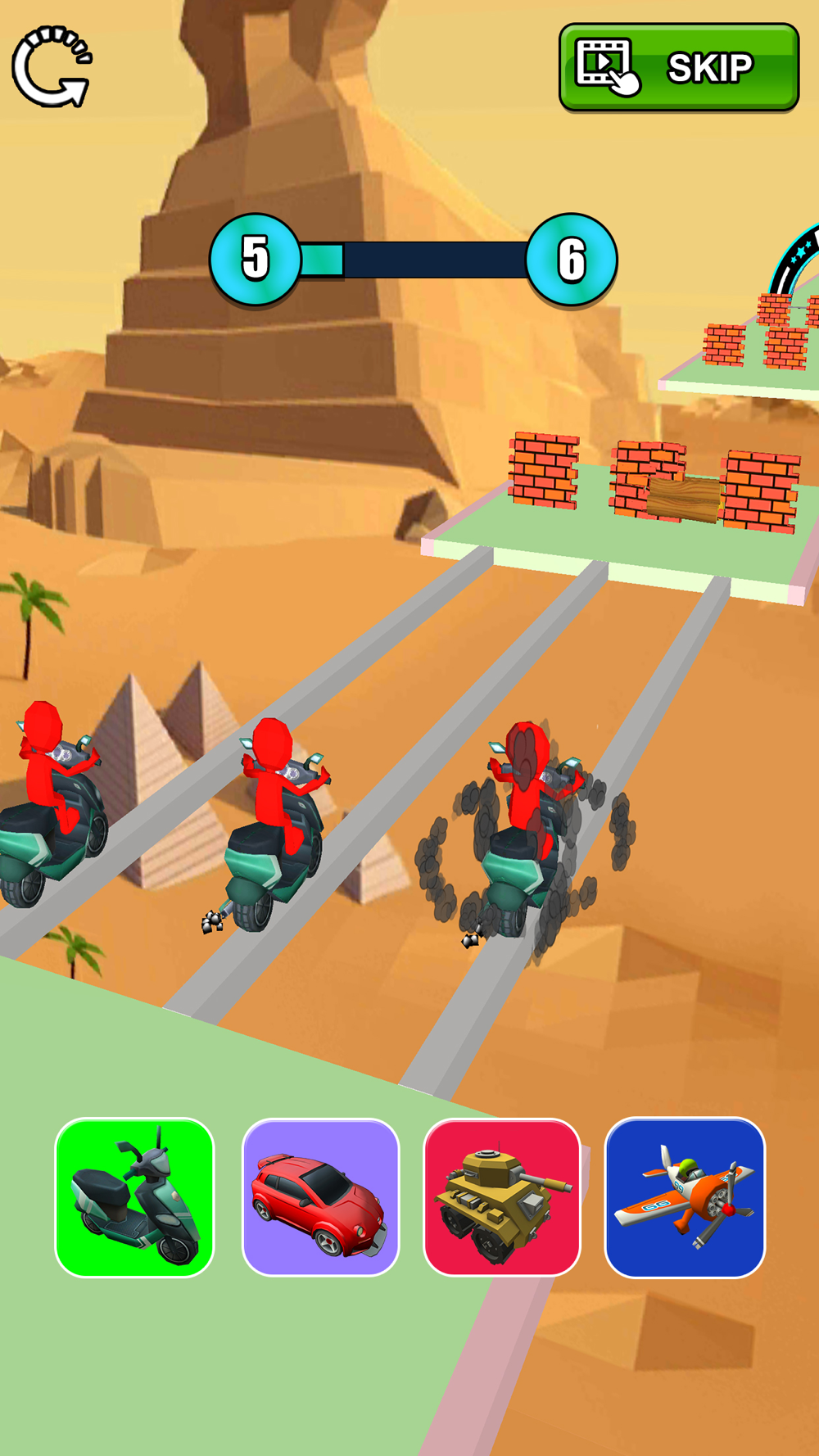 Get ready for the Vehicle transform race! In this speedy and epic race you need to transform vehicles according to the challenging tracks. Switch racing vehicles on the runway according to the obstacles.