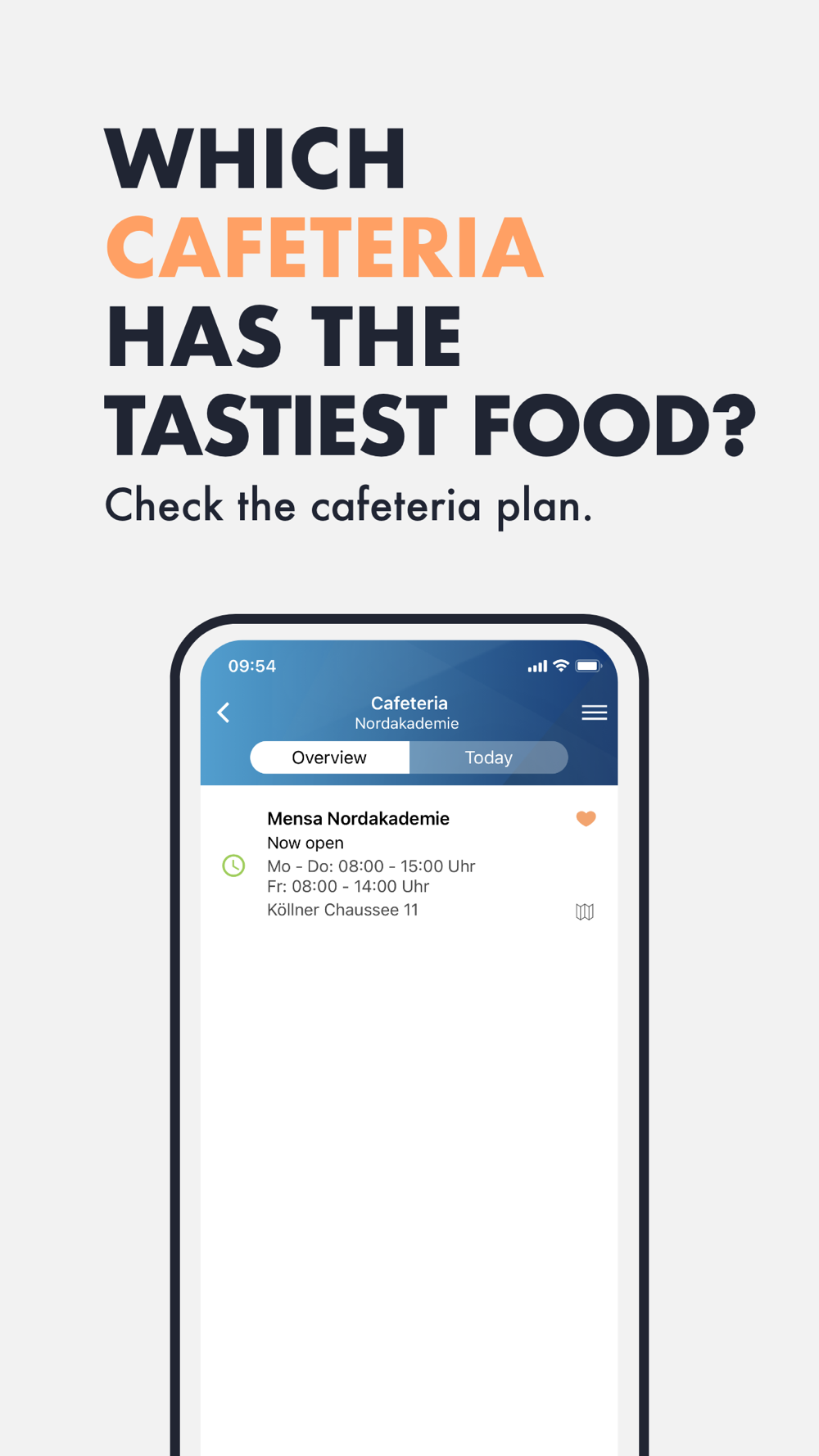 Mensa: Scroll through the menus and find out already in the lecture whether the way to the Mensa is worth it. Or best of all, mark your favorite Mensa and you will see all Mensa dishes directly on the homepage or as a widget.
