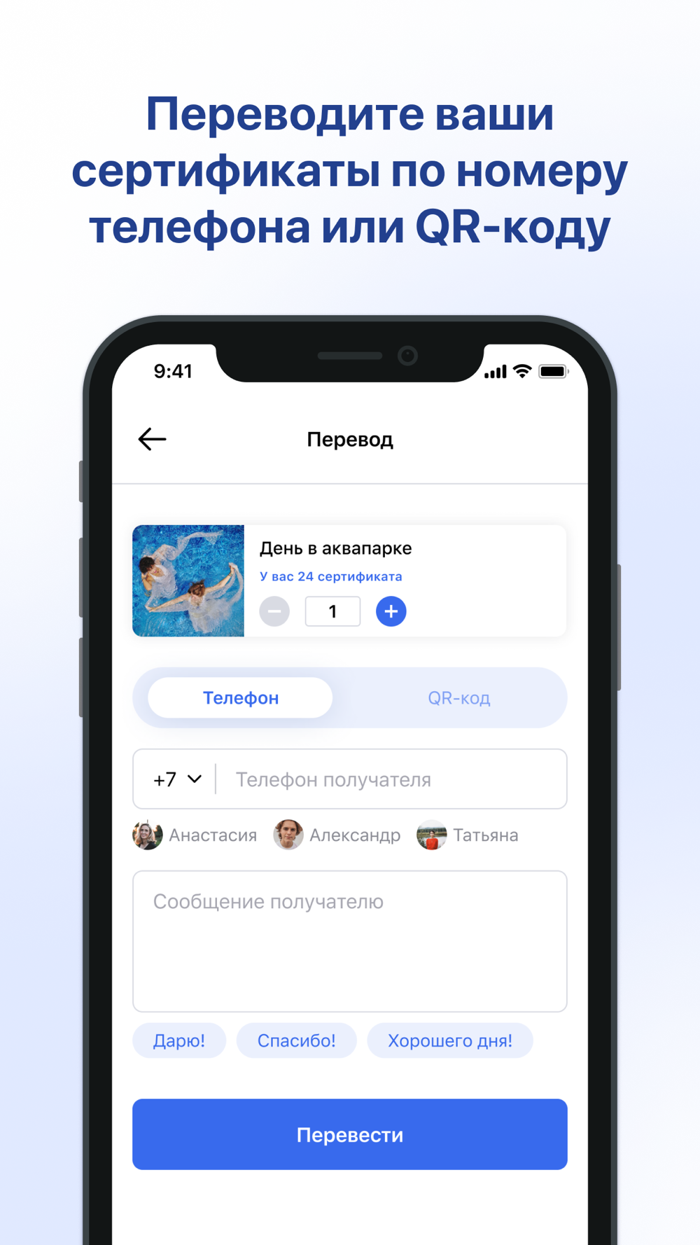 Once a certificate is received in one place, it can be exchanged or transferred to another person via Dostyq.