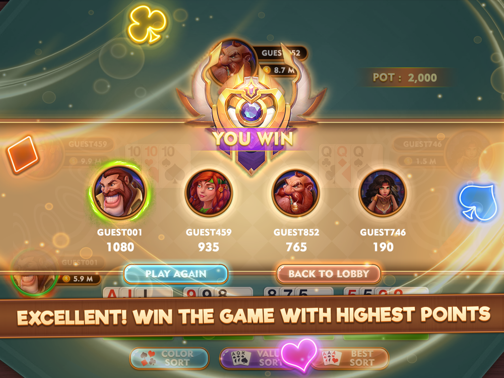 -arrange your card by suits and gives challenges to opponents with hazari card game.
