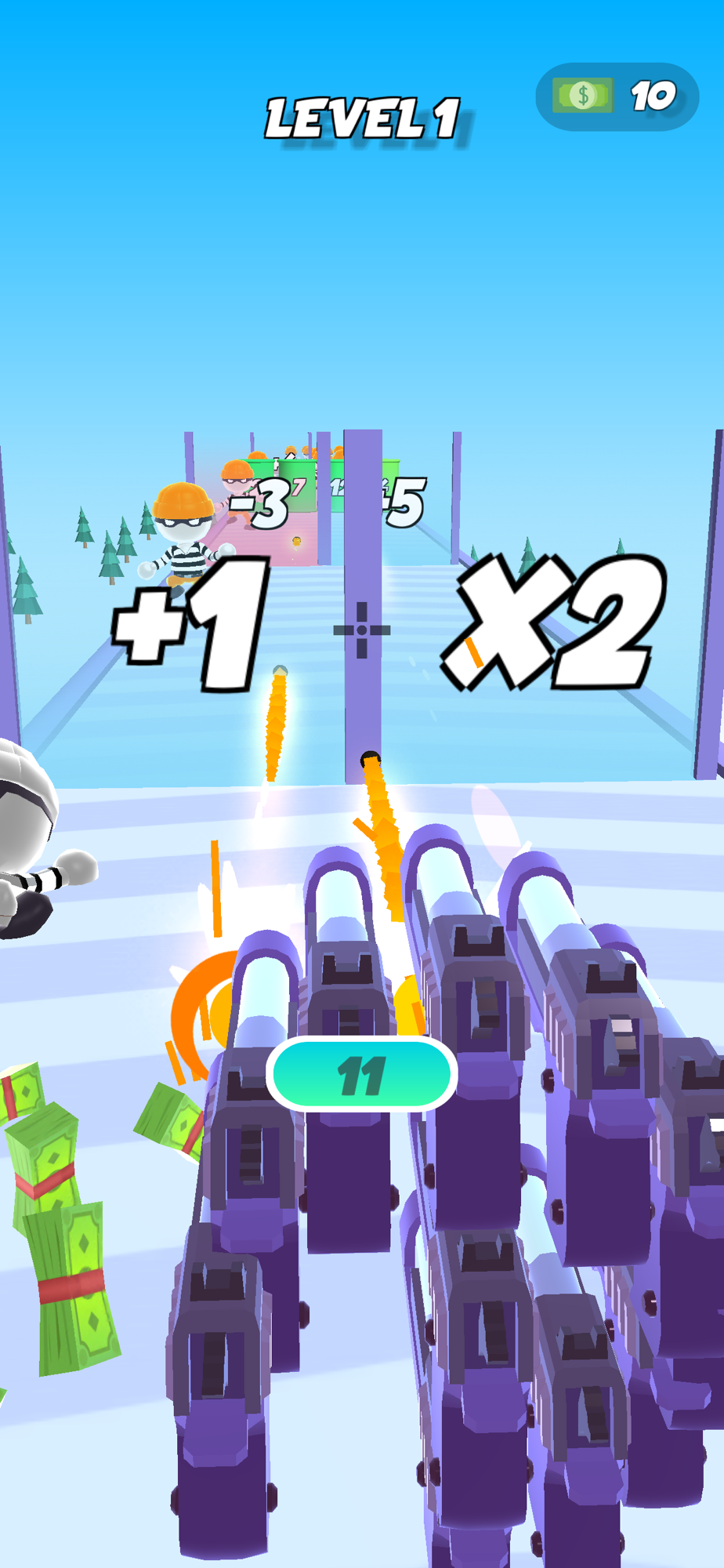 Try to reach a maximum number of guns to kill all the enemies!