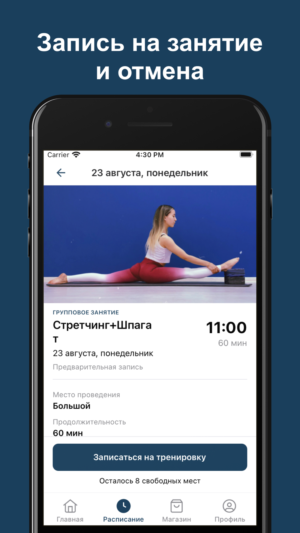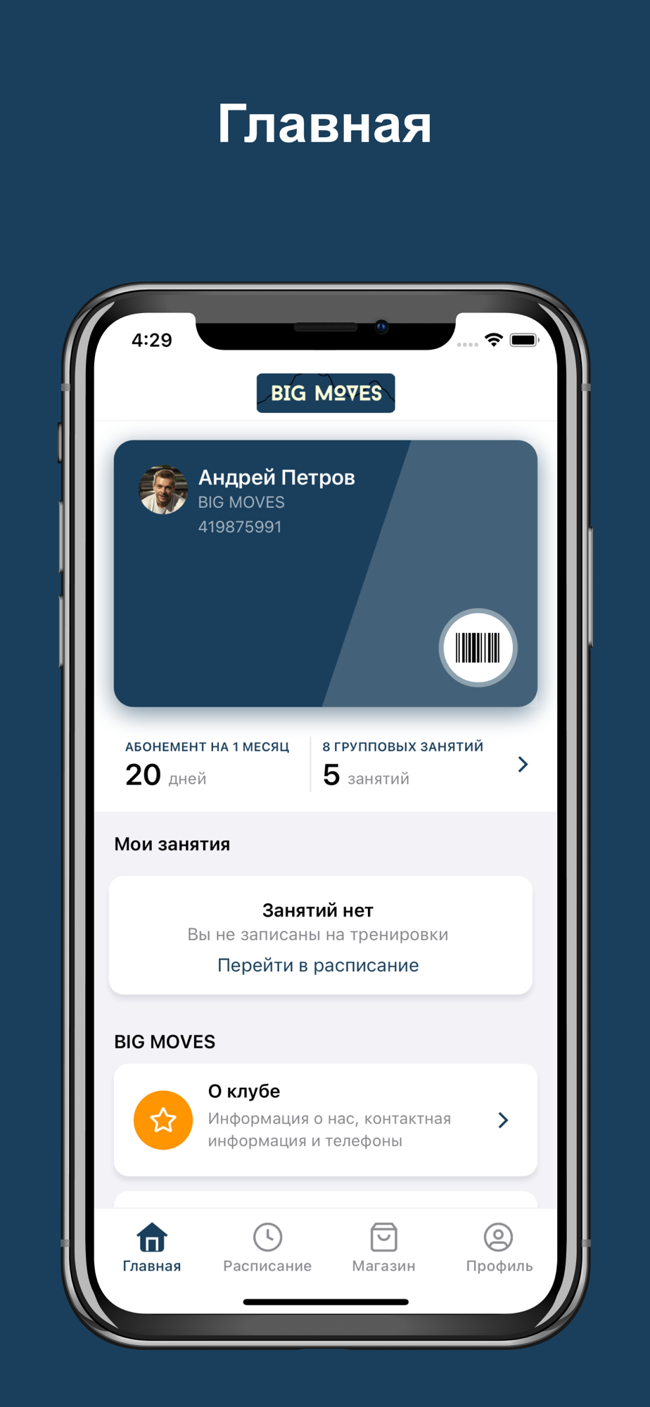 Онлайн запись в студию танцев и растяжки Big Moves. Наше приложение с удобным интерфейсом позволяет одним нажатием записаться к нам на занятие и следить за своим абонементом онлайн.