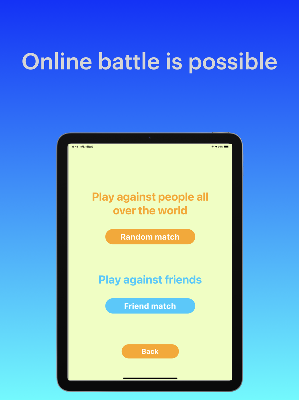 You can play against people and friends from all over the world online.