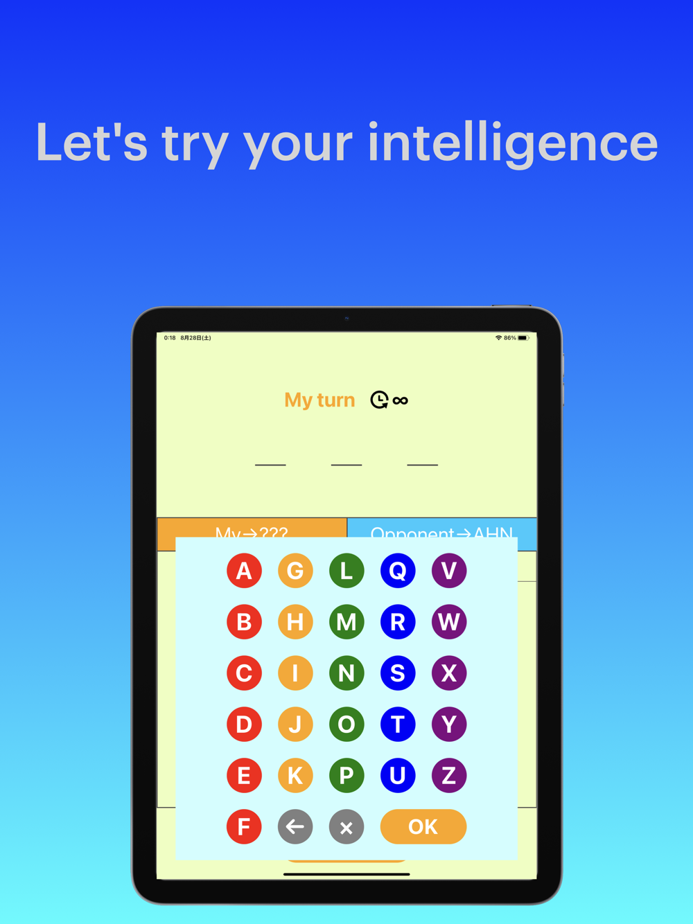 An alphabet version of Numeron, a game that infers three-digit numbers.