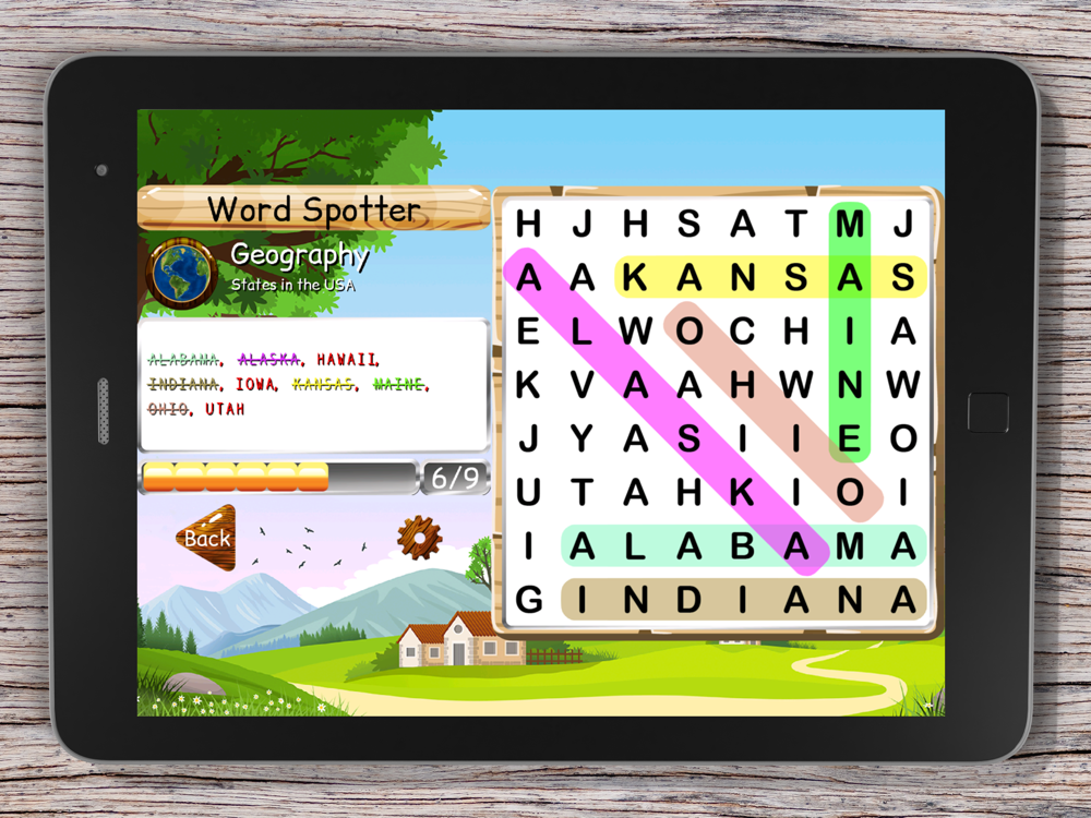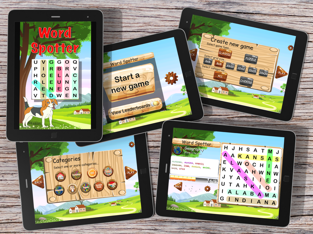 - 'Puzzle' mode hides the words until found, but also provides handy hints to help you along the way
