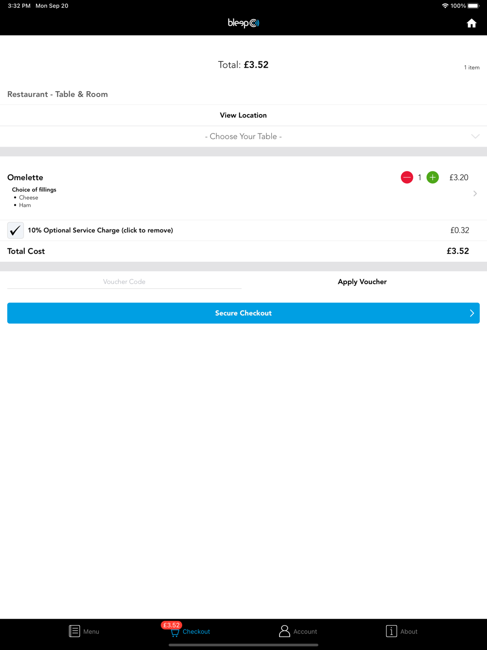 Welcome to Bleep Hospitality ordering! Intuitive & easy to use with a clear step-by-step selection and ordering system.