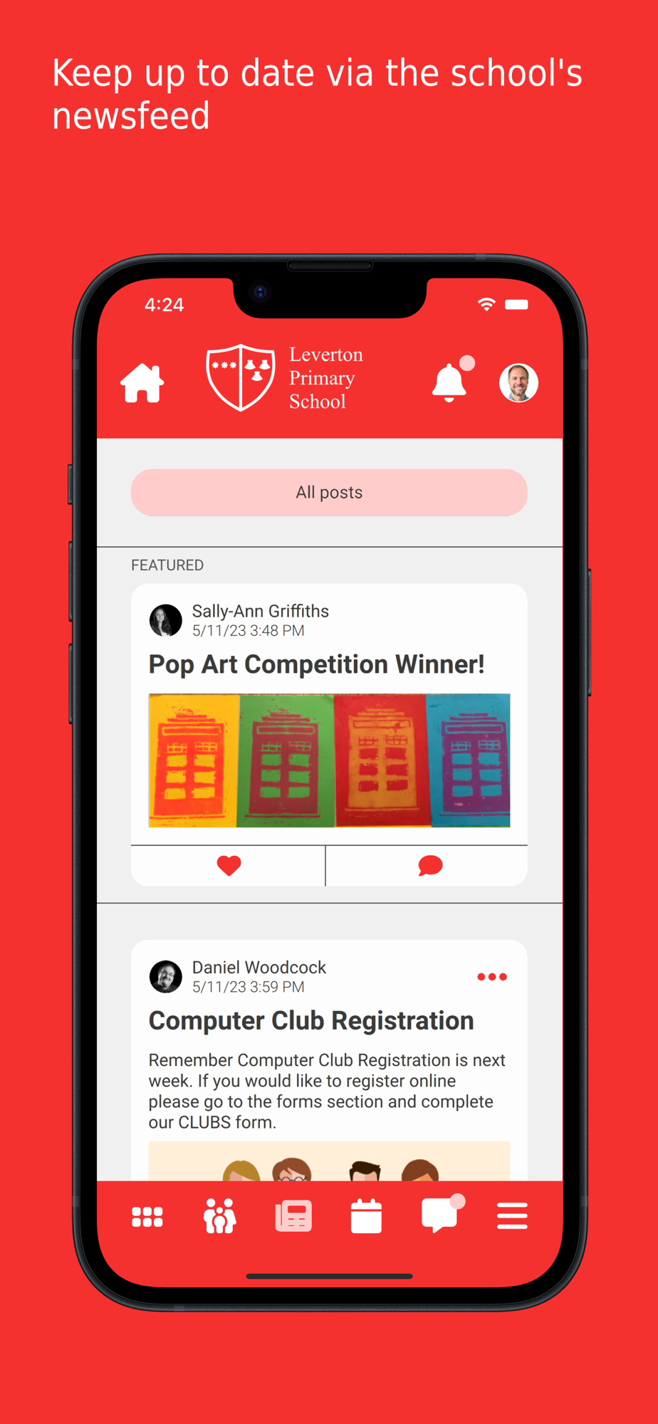 This app is Leverton Primary School's own parent engagement and communication app and it is designed to enhance communication between the school and parents of our students.