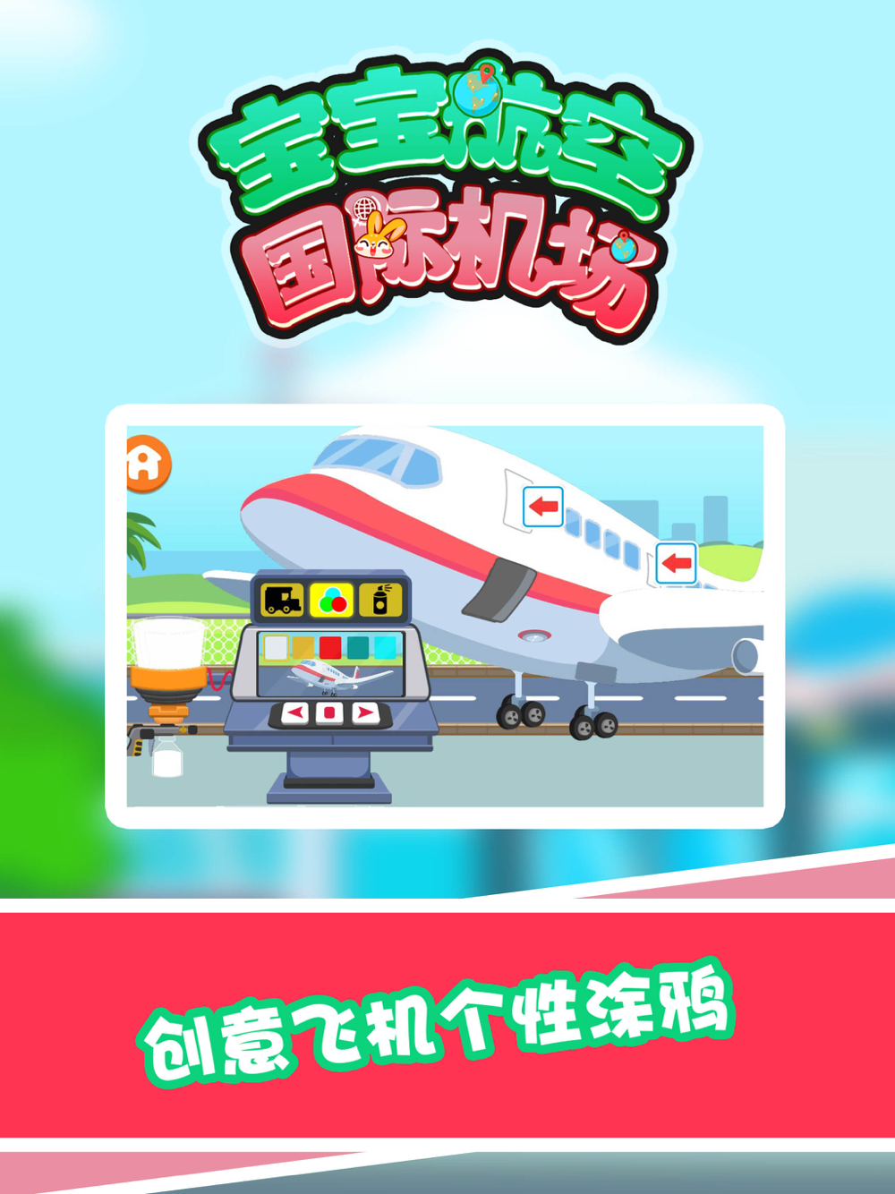 【宝宝航空国际机场】是一款益智趣味互动早教产品 ,模拟真实有趣的乘飞机流程,让宝宝轻松掌握飞机安全知识。在这里宝宝将会得到丰富多彩的机场体验,可以为飞机涂上好看的涂鸦,还能参与到有趣的机场工作,包括安检人员,机长等等。游戏贴近生活,能提高宝宝的理解能力。引导儿童掌握旅行的注意事项,加强儿童的安全意识。新颖的玩法,精美的场景,促进宝宝的智力发展!