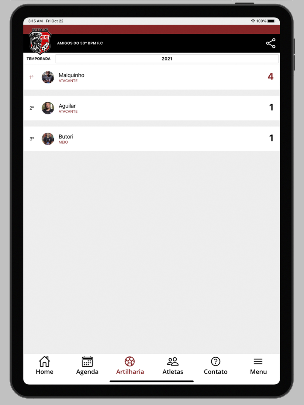 Todas as informações do Amigos do 33° BPM F.C na palma da sua mão! Acompanhe ao vivo a partida com avisos sonoros personalizados durante os jogos! E muito mais, escalação, estatísticas, notícias, vídeos, minuto-a-minuto e informações sobre os campeonatos!