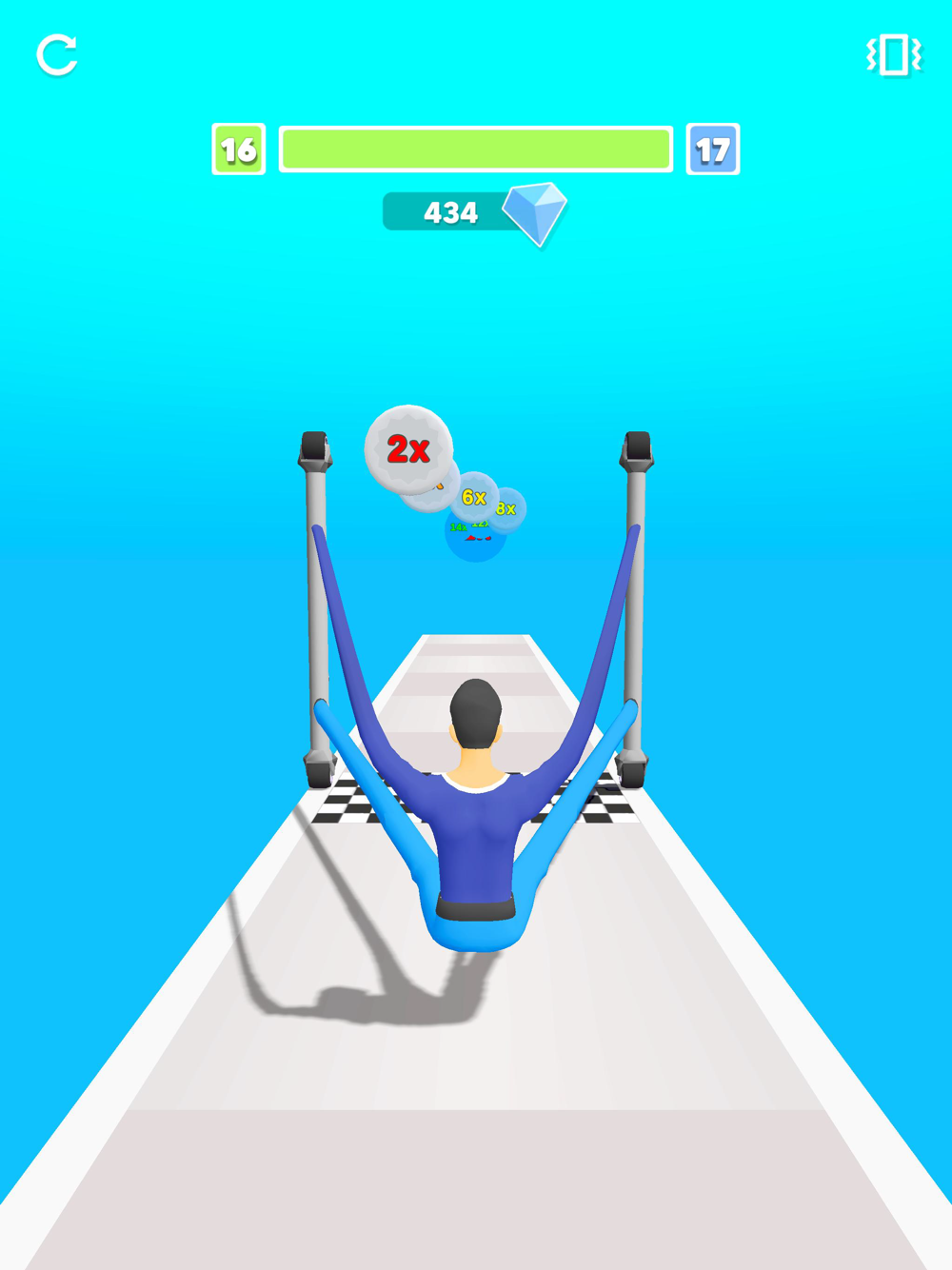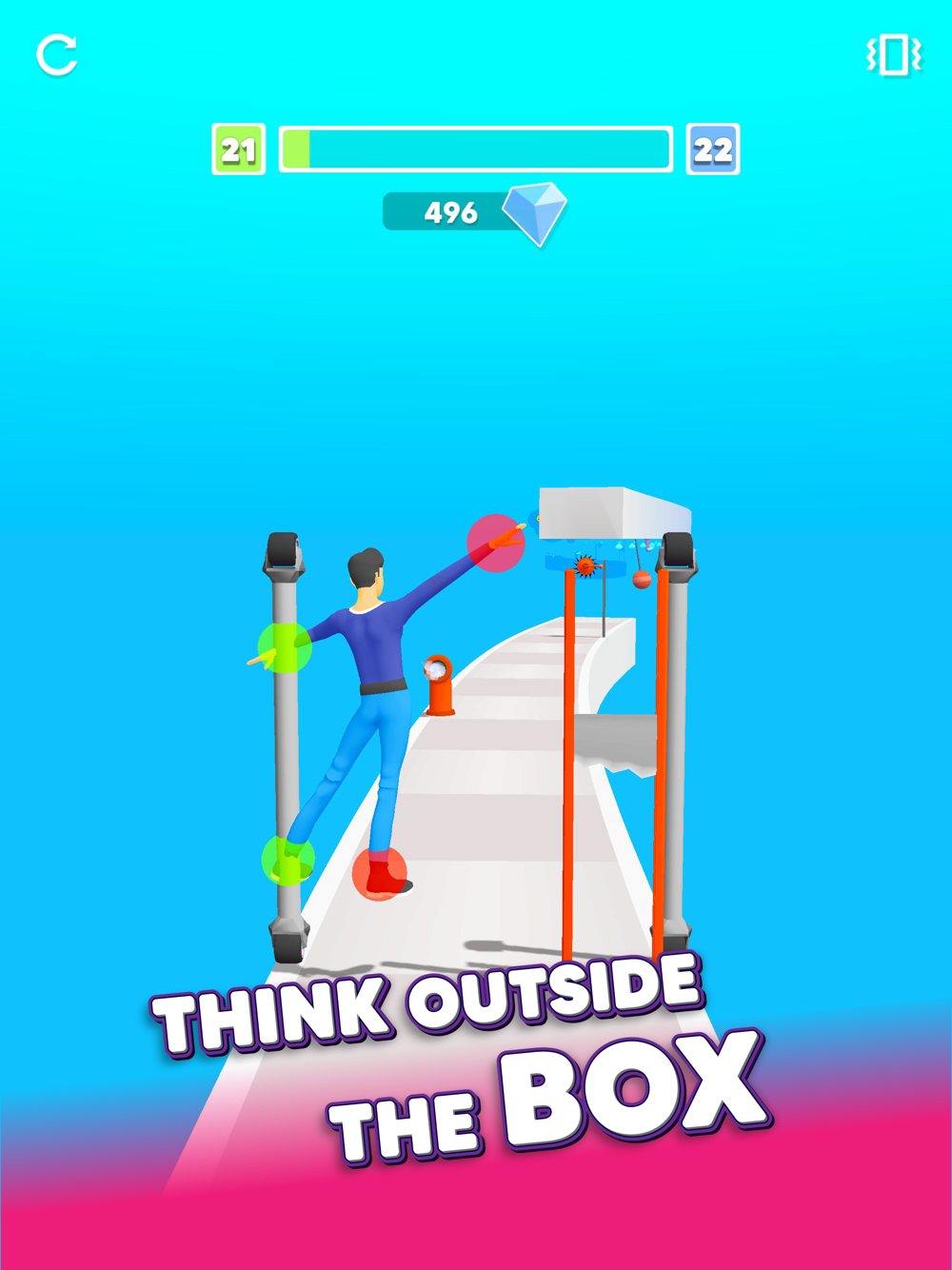 Avoid obstacles and collect diamonds by changing the places you hold between the two advancing poles.