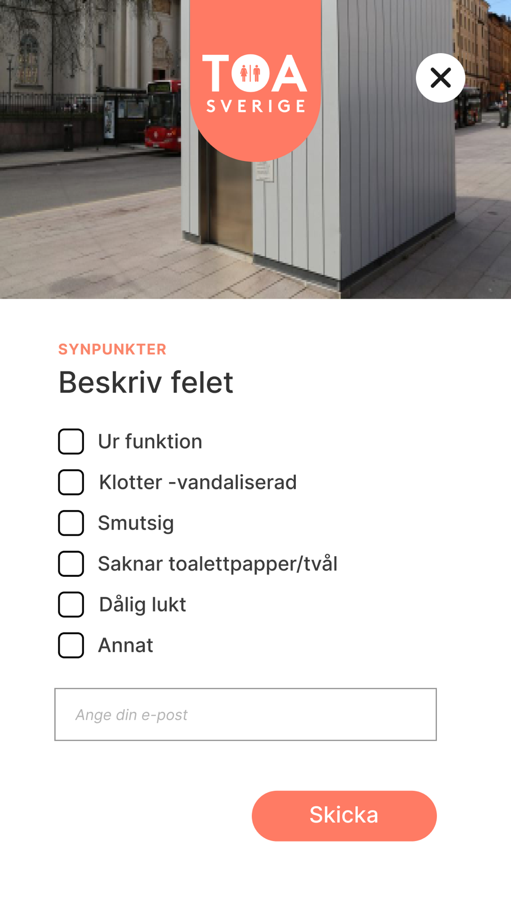 JCDecaux designar och levererar offentliga toaletter helt kostnadsfritt till 15 städer runtom i Sverige. I Stockholm finns 66 toaletter spridda över staden, alla är gratis att använda, tillgänglighetsanpassade, självrengörande och miljösmarta. Nu lanseras en ny app så att besökare kan se dagsaktuell status för respektive toalett och hitta den närmaste öppna toaletten när det är bråttom. Stockholmarna kan också se vilka toaletter som är populärast, mest besökta, senast rengjorda och mycket mer. Informationen finns också tillgänglig på www.toasverige.se.