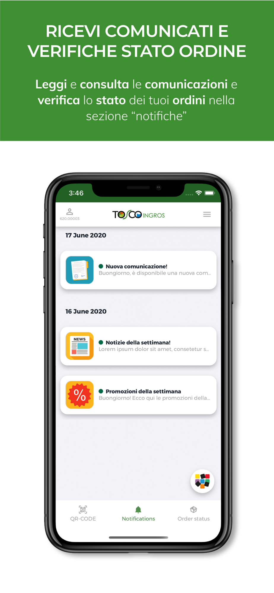 Grazie alle sue funzionalità potrai avere il tuo QR code personale, ricevere notifiche di comunicati e visualizzare lo stato dei tuoi ordini.