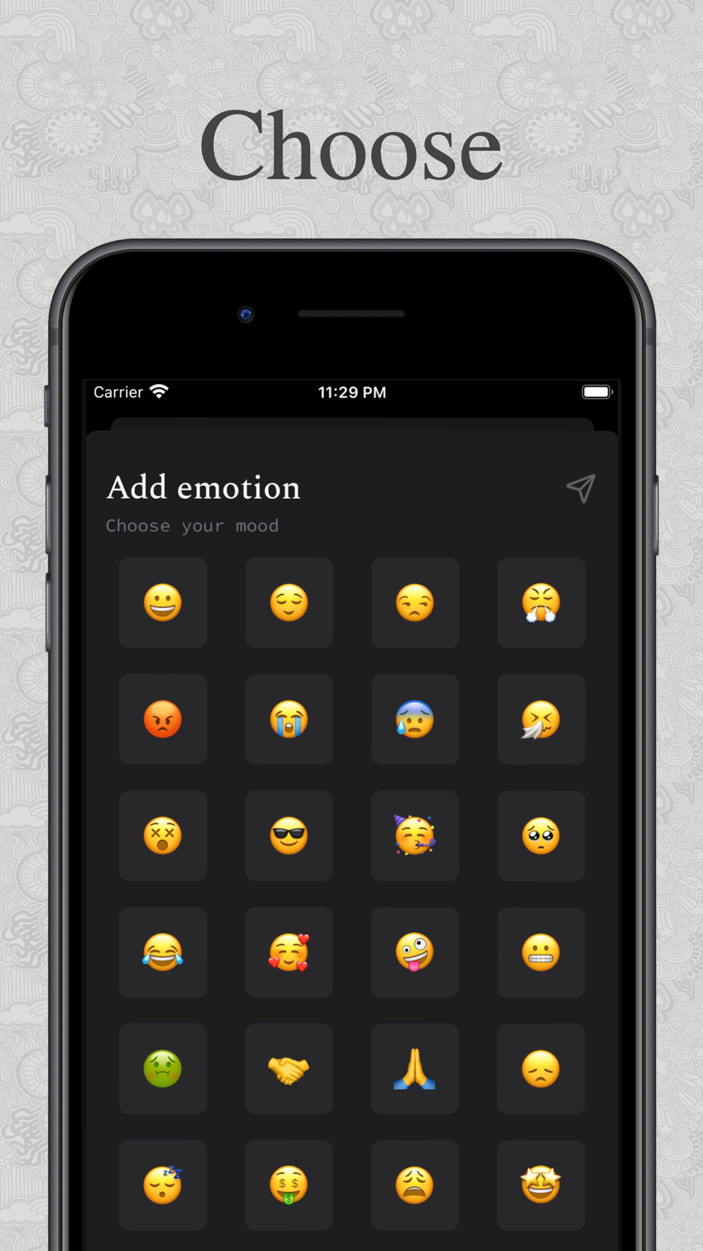 No.Emotion is an app for tracking your mood and working with it. In the application you can record all bright moments that happen to you every day, assigning emoticons corresponding to them.