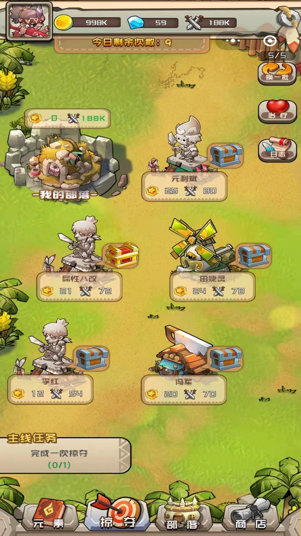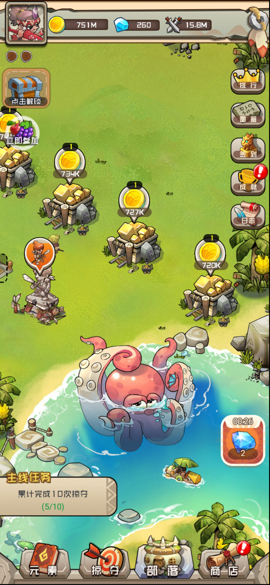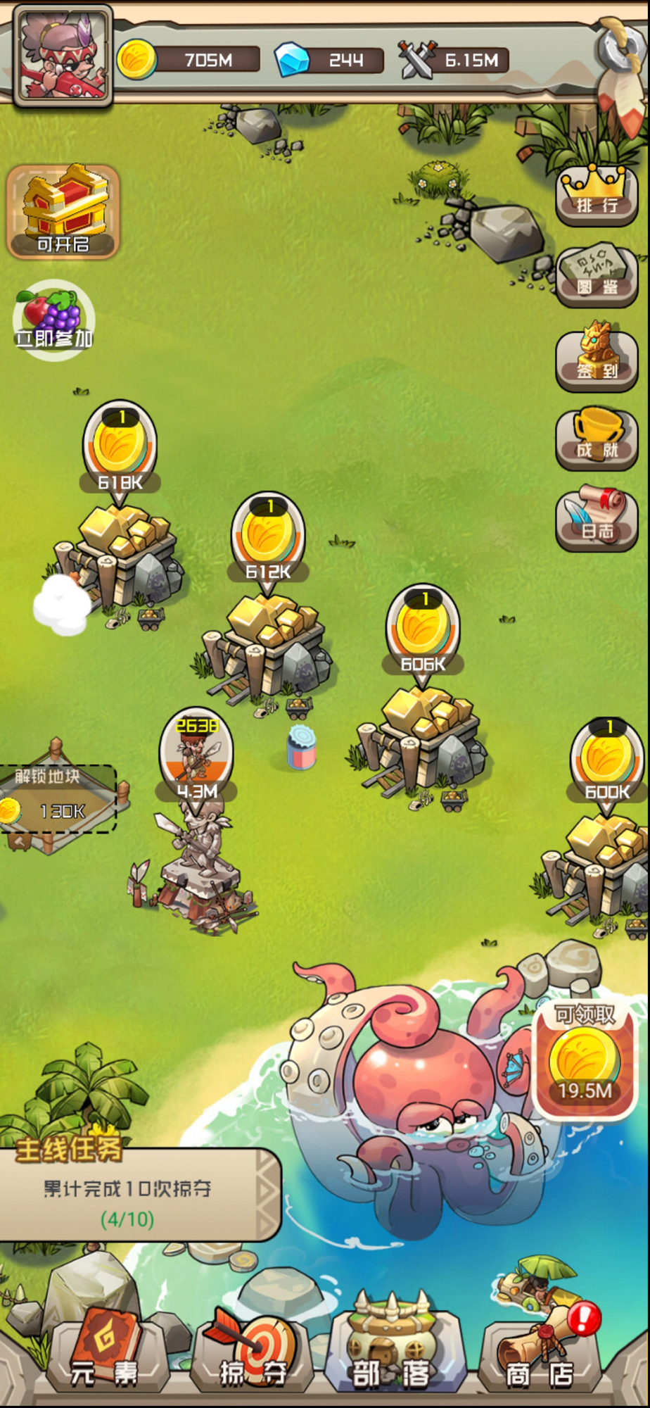 曾经我的部落物质丰富,人们安居乐业,然而一场掠夺让我的部落毁于一旦,重头再来,我要建立最强大的部落,建造各种建筑生产物资,铸造强大的部队保卫家园,探索天地间元素合成的秘密,解锁部落强大的奥秘。征战周围部落,获得物资,提升部落的星级,只有部落强大才能免受其他部落的侵袭。