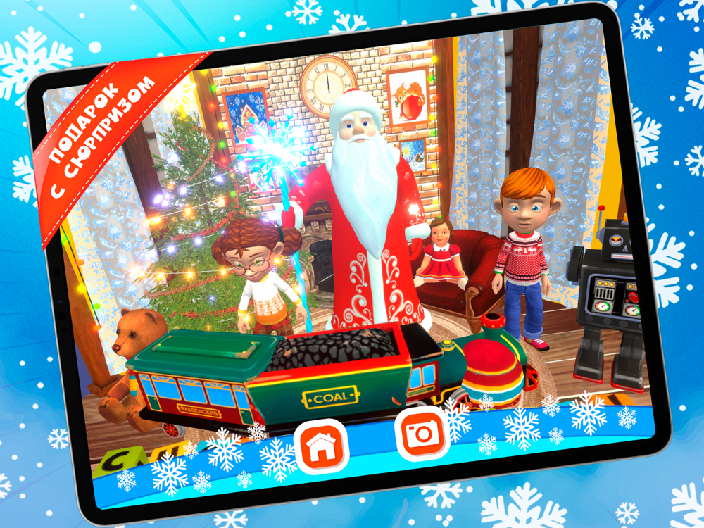 Это приложение поможет оживить твой красочный подарок с помощью дополненной реальности. На экране твоего смартфона или планшета удивительные персонажи поздравят с праздником и сыграют с тобой в увлекательные игры.