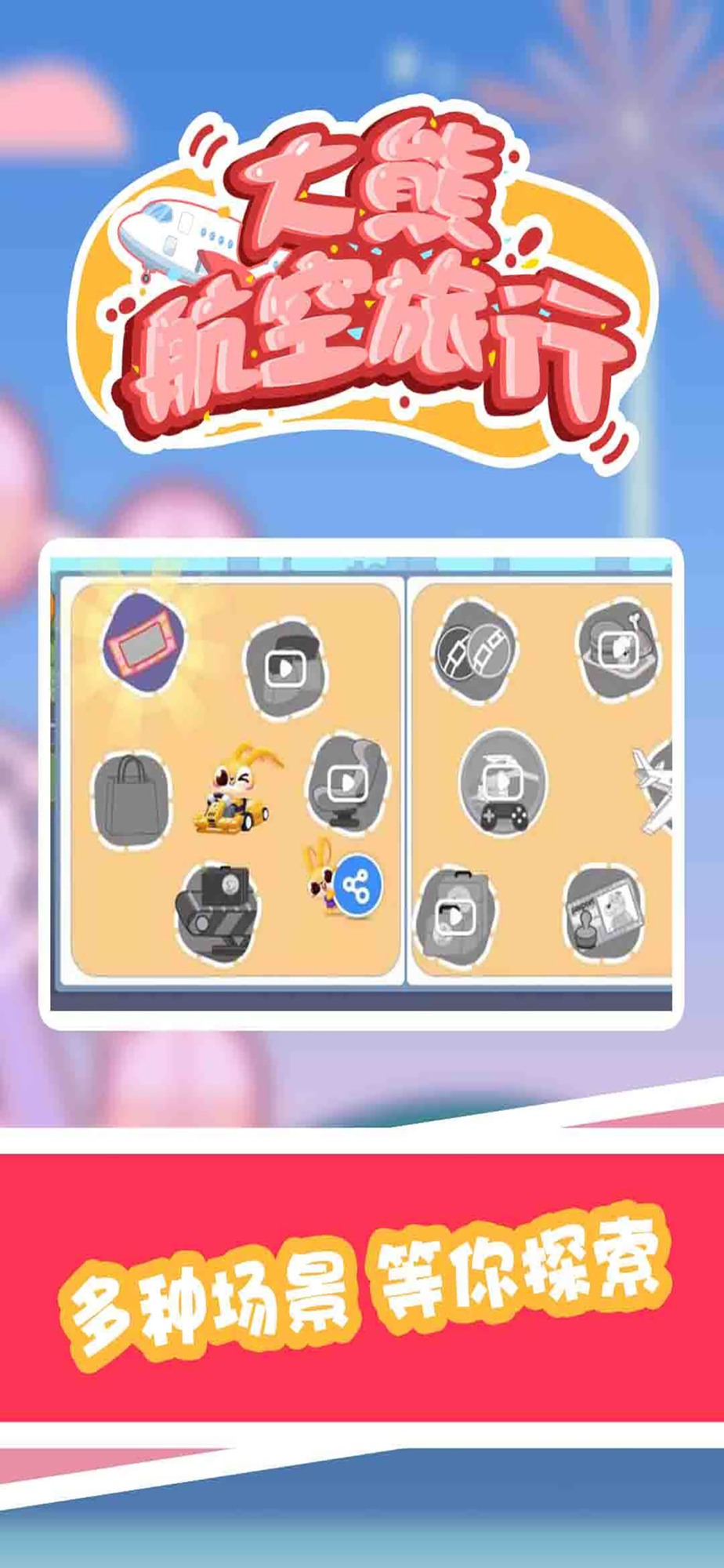 奇妙的旅行从收拾行李开始,仔细分好家人的物品,记得不能带违禁品哟!当然也不能忘了给朋友们带些纪念品。准备登机啦,一定要配合工作人员的工作哟。下飞机的时候不要拿错行李啦。还有随时随地都可以玩一局的飞行小游戏,记得要躲避小鸟哟!