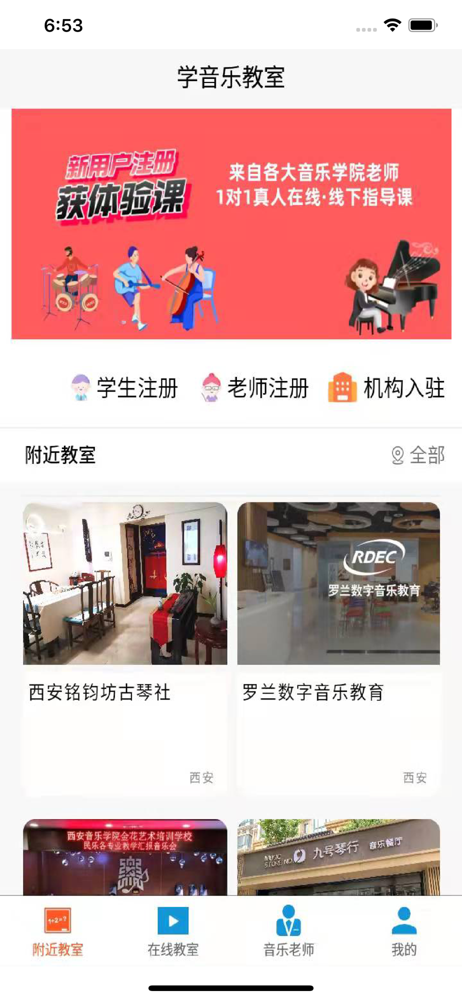 学音乐教室APP是一款在身边找到音乐教室和学音悦网专属教室使用平台,下载注册后即可获得一次在身边线下或线上音乐教室学习体验机会。平台拥有上万名来自上百音乐学院的专业老师,可以帮助音乐学习者进行1对1和小组小班课程教学,也可以为学生提供真人陪练服务。目前涵盖了学唱歌、学声乐、学小提琴、学钢琴、学大提琴、学古筝、学吉他、学单簧管、学长笛、学架子鼓、学萨克斯等丰富的专业音乐教室服务。