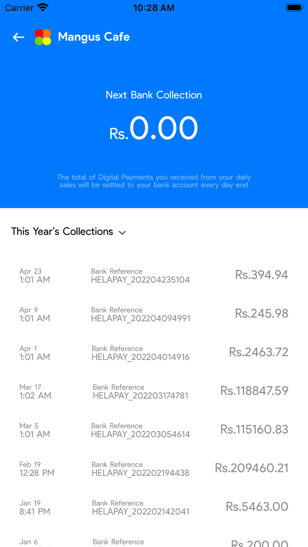 - Viewing the bank collection details settled to your bank account at every day end