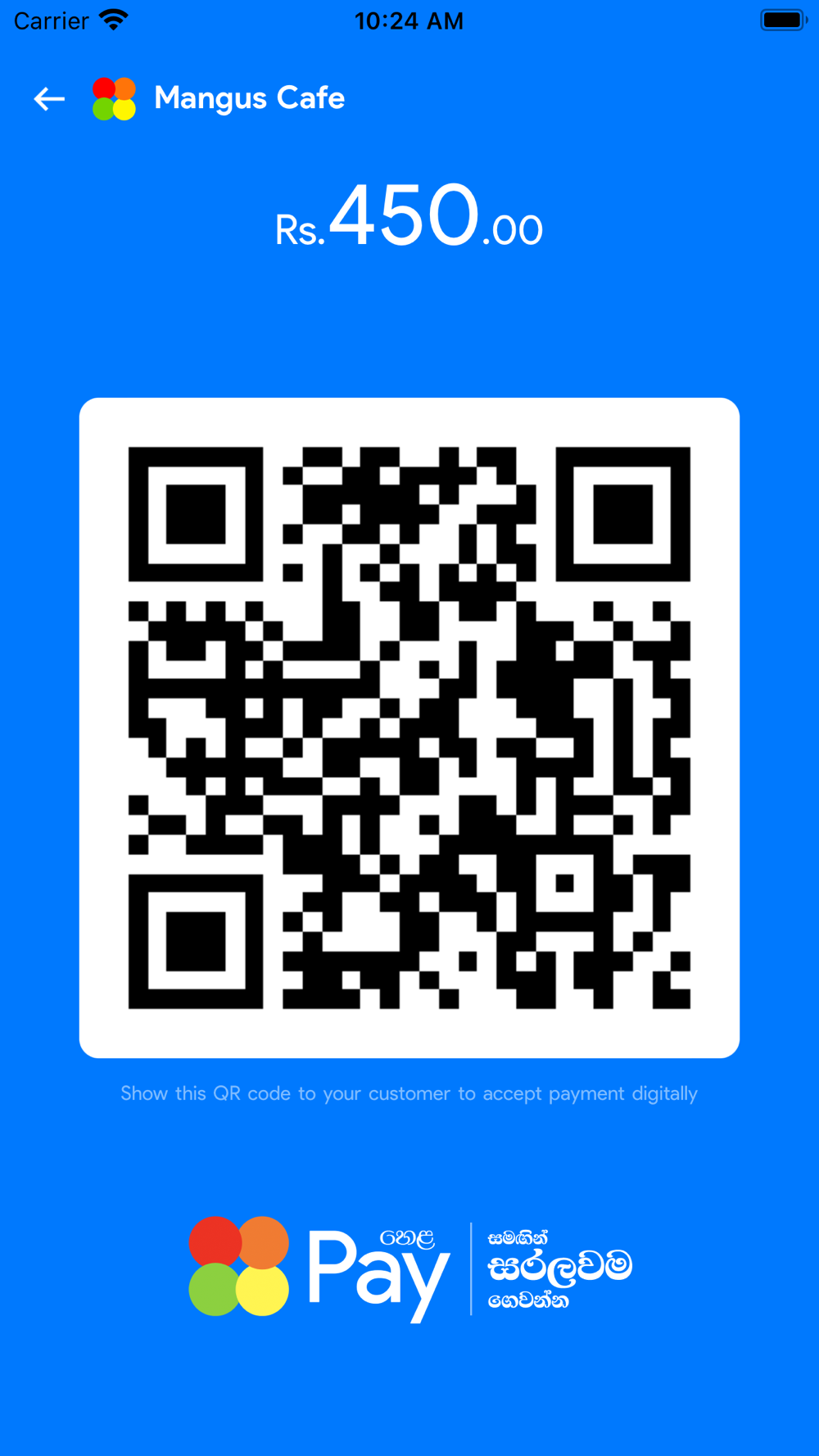 3. As soon as your customer scans it with Helakuru or any other app & pay, you’ll receive an instant Notification & the screen will be updated as payment received