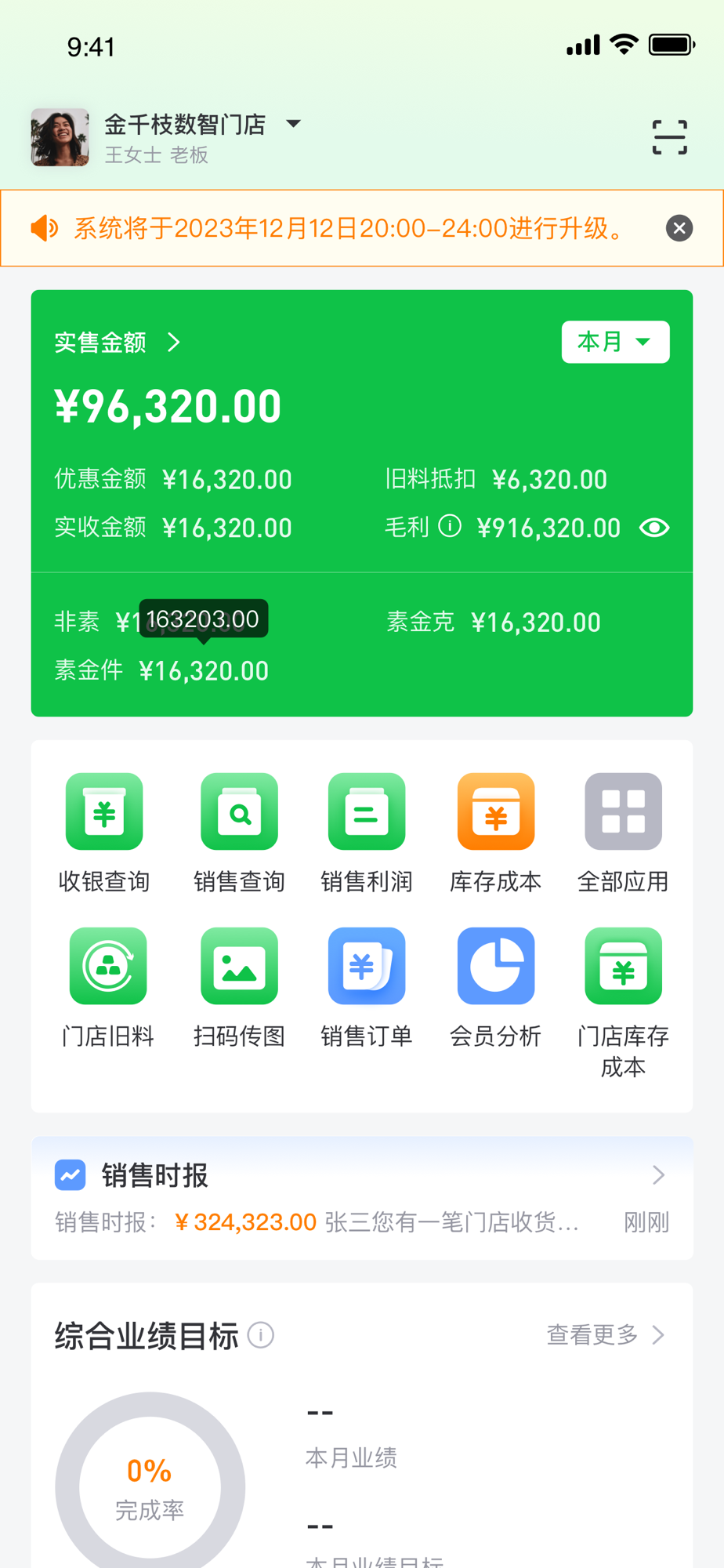 2.全新的工作台,销售数据、会员数据、销售排行榜等实时掌握。