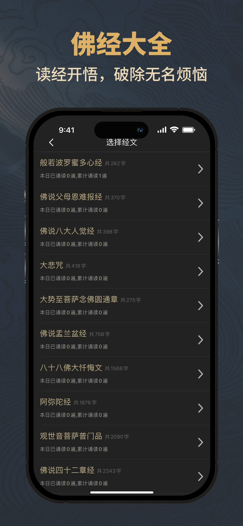 汇聚佛门常诵经典,数十部经书供您选择。《心经》、《金刚经》、《法华经》等佛门经典,随时随地可供您敲诵,助您深入内心,感悟佛法的智慧,让您的心灵得到净化。