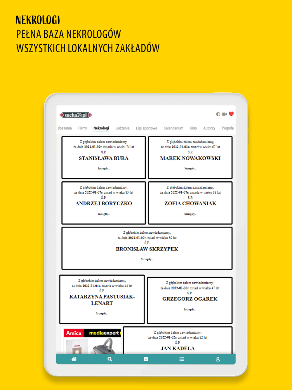 Nekrologi to informacje na bieżąco aktualizowane dotyczące osób zmarłych na terenie powiatu suskiego. W dziale tym znajdziesz nekrologi ze wszystkich zakładów pogrzebowych. Możemy zapoznać się z informacjami o datach i miejscach uroczystości pogrzebowych. Oprócz aktualnych informacji możemy także w tym dziale odnaleźć archiwalne nekrologi.