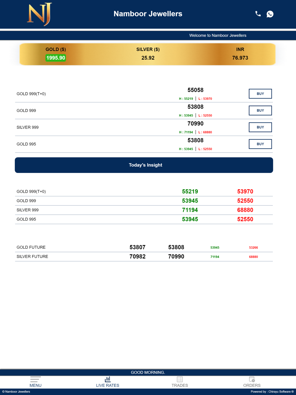 Our app shows the fastest updated LIVE RATES of gold.