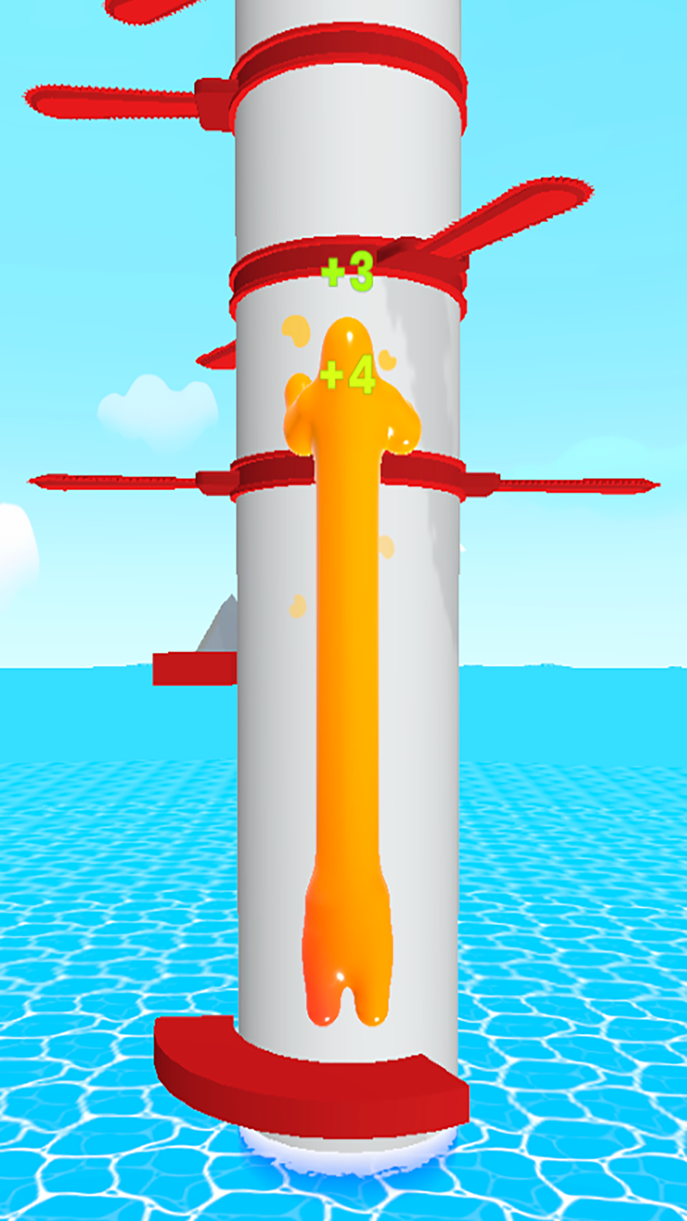 your goal is easy -> escape from water by Stretching the blob, avoide obstacles, collect the missing parts and reach the highest point of the tower