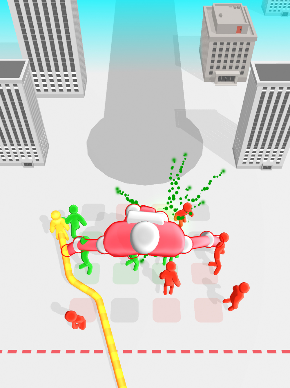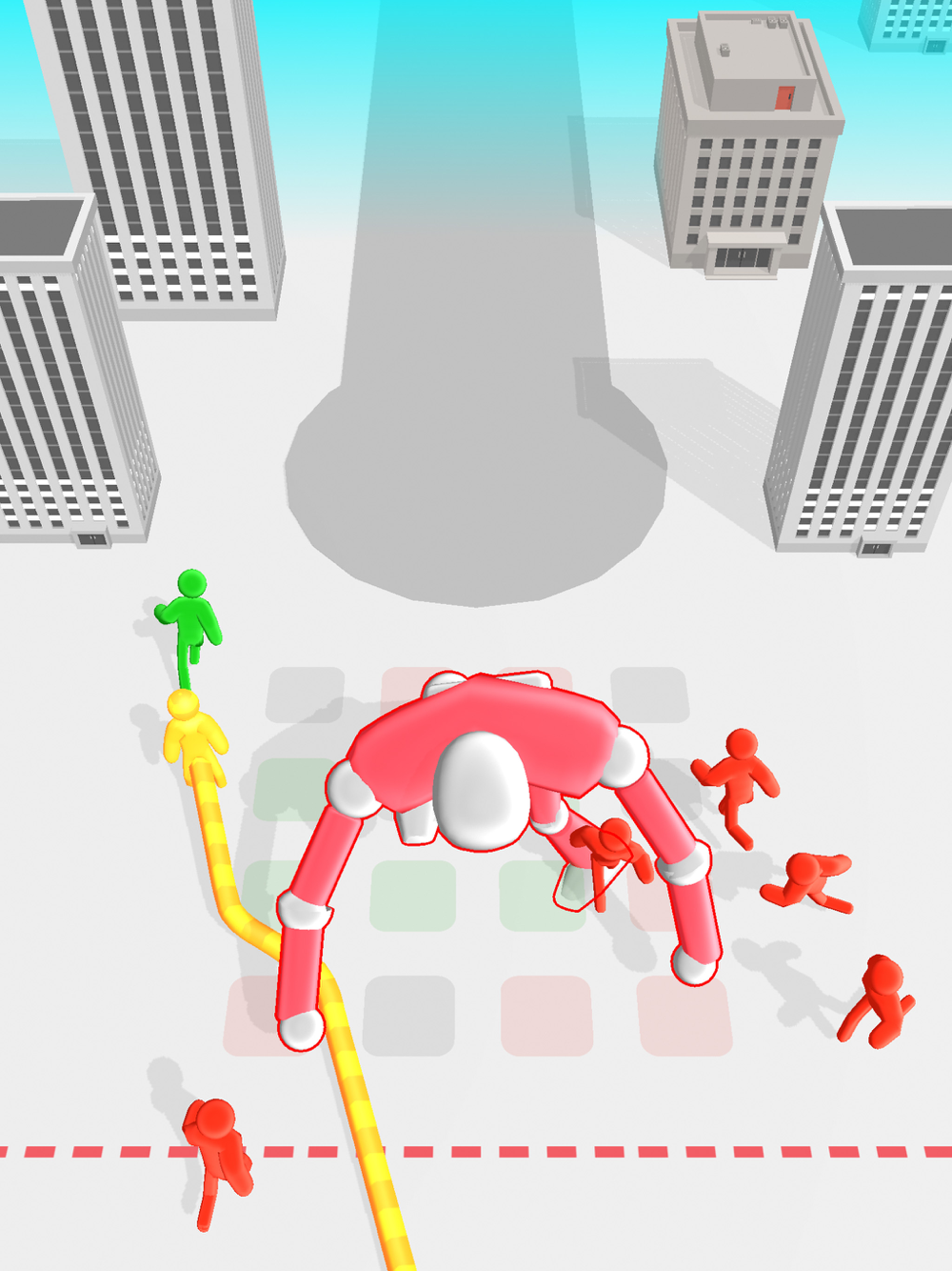 To stop the giant, all you have to do is stuff the green men into the rope.