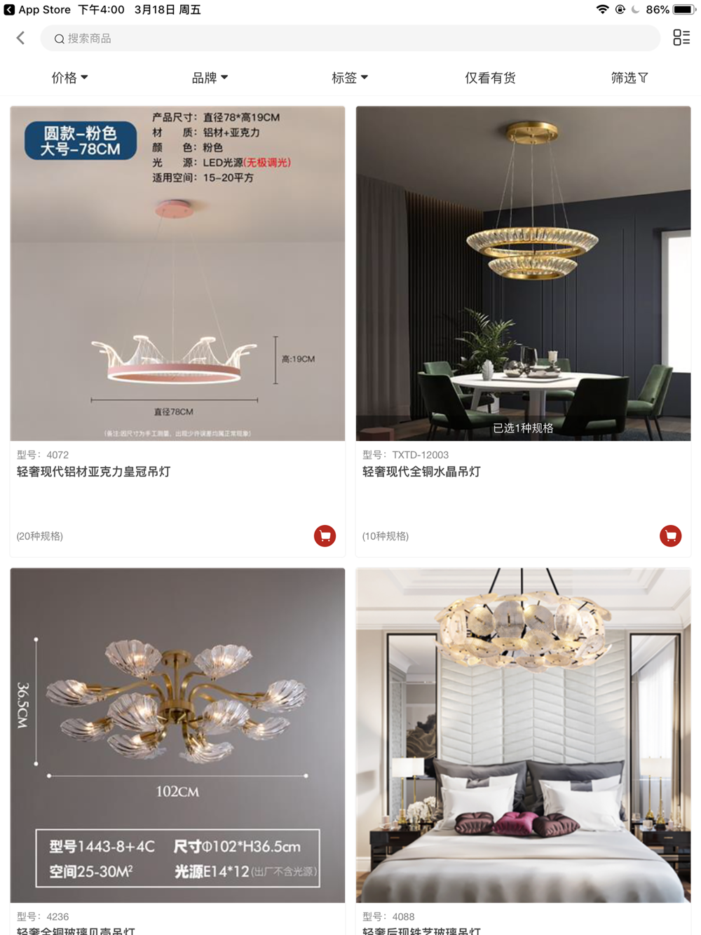 建材帮一个建材一站供应链的电商平台,为经销商,装饰公司,定制软装公司,提供一站式采购的服务,产品涵盖:全品类开关,灯具,洁具,家具,厨电,全国各地建立了4大仓储中心,常州,武汉,成都,西安,下单后48小时内发货。同时为每个经销商,装企,定制软装公司打造一个独立的个人商城,卖货,直播等服务