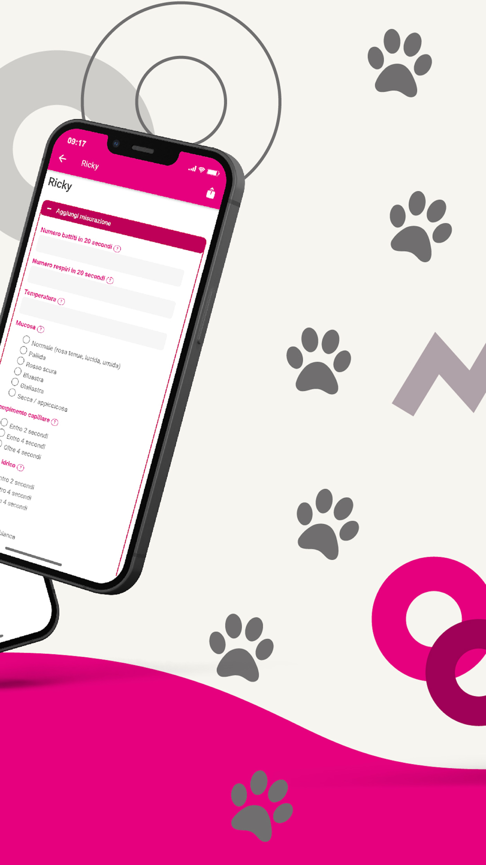 monitorare i parametri vitali del tuo cane (battito cardiaco, temperatura, mucosa, respirazione, occhi ecc.);