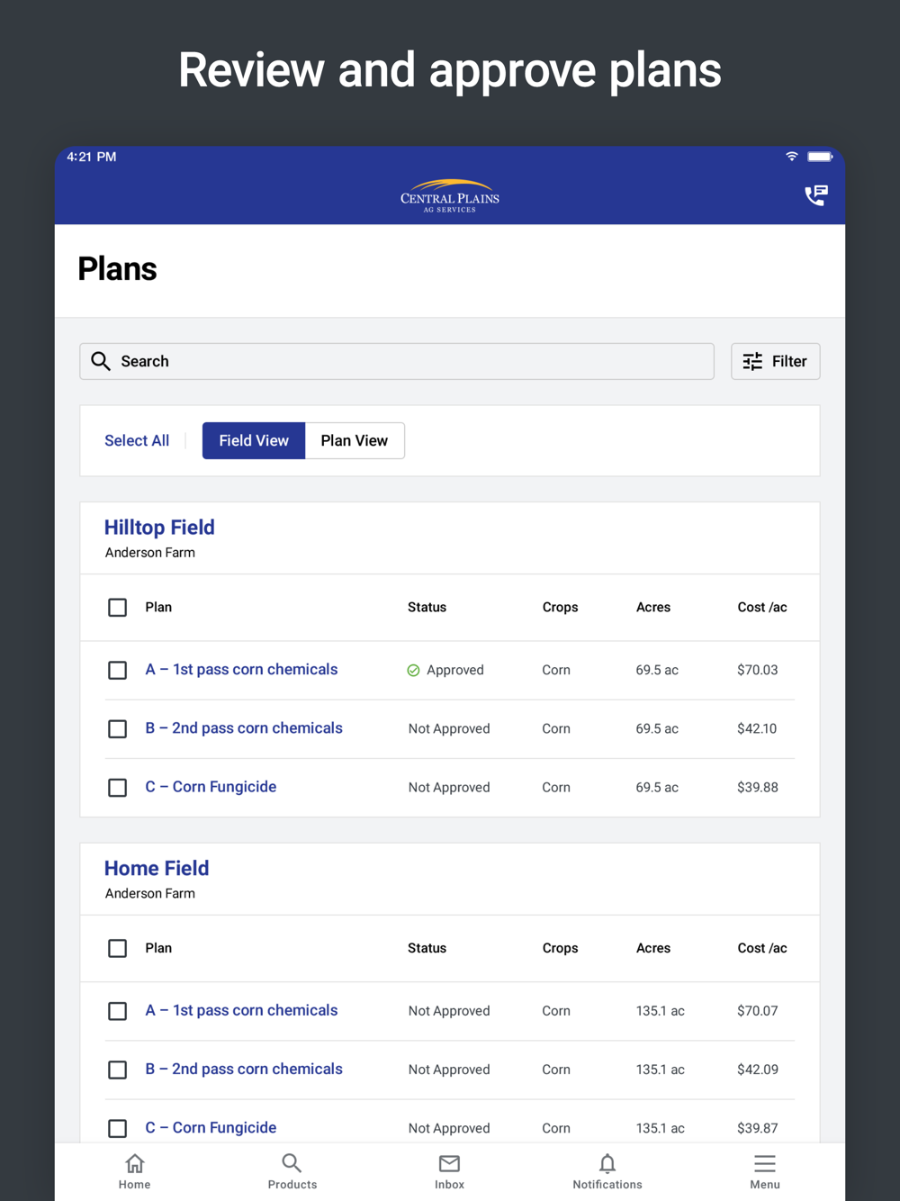 Central Plains LLC located in East Central North Dakota offers a broad and growing portfolio of fungicides, herbicides, and Insecticides. Including well known brands like Dekalb, Syngenta, Croplan, Mosaic, Bayer, FMC, Corteva, and Syngenta. While the chemistry isn’t unique, the Central Plains experience is. Delivering products that are relevant to your operation, and doing so at the right value, is how we ensure we are your partner in profitability. Our financing make decisions easier by supporting you with the likes of CHS Financing, Secure, JDF, Rabo, Truechoice or our In-House options. Our portal makes it easier to do business with CPAS and puts your information right at your fingertips.
