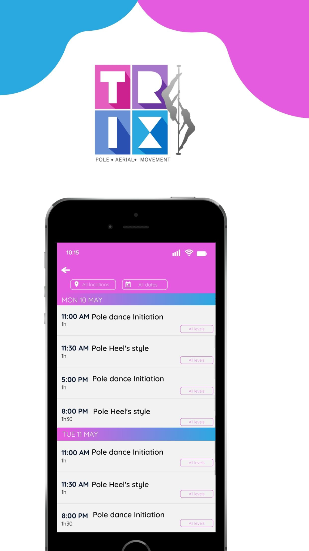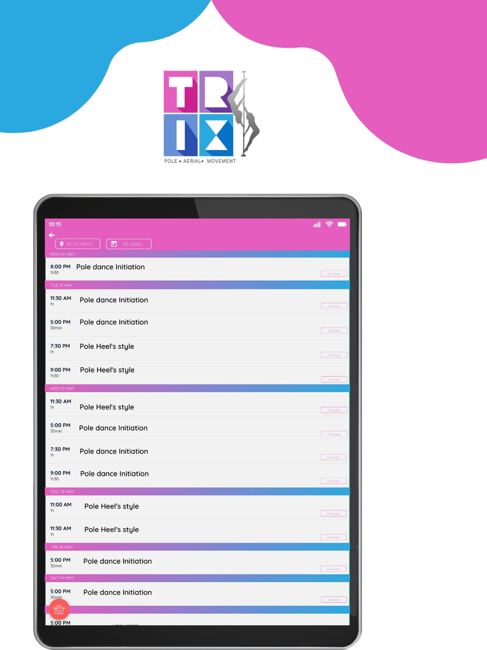Welcome to your TRIX App! Here, you can meet us virtually to know more about our classes, instructors and of course, book your spot. Let's TRIX together!