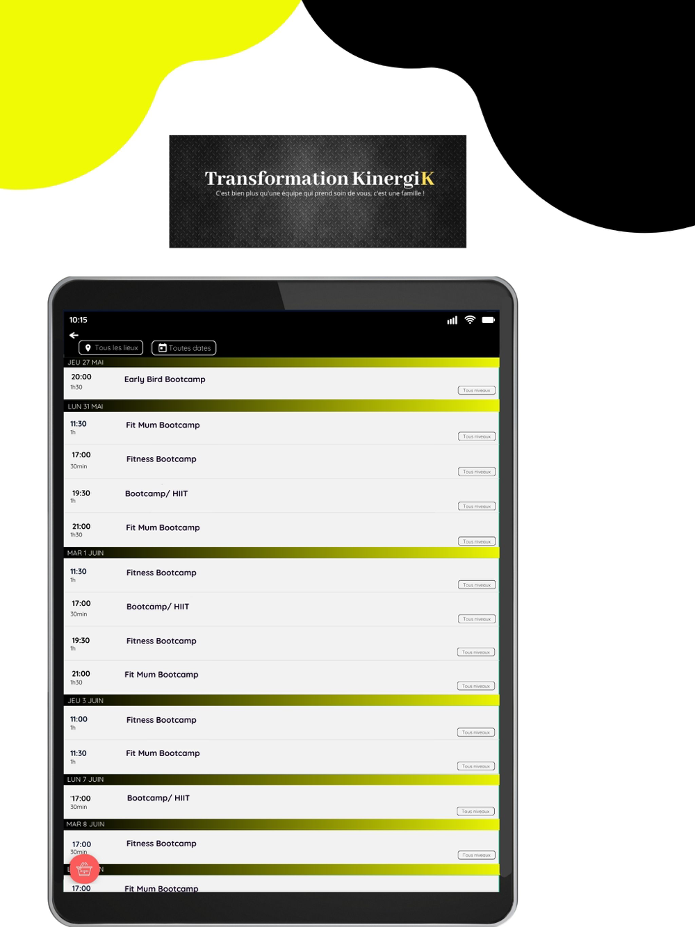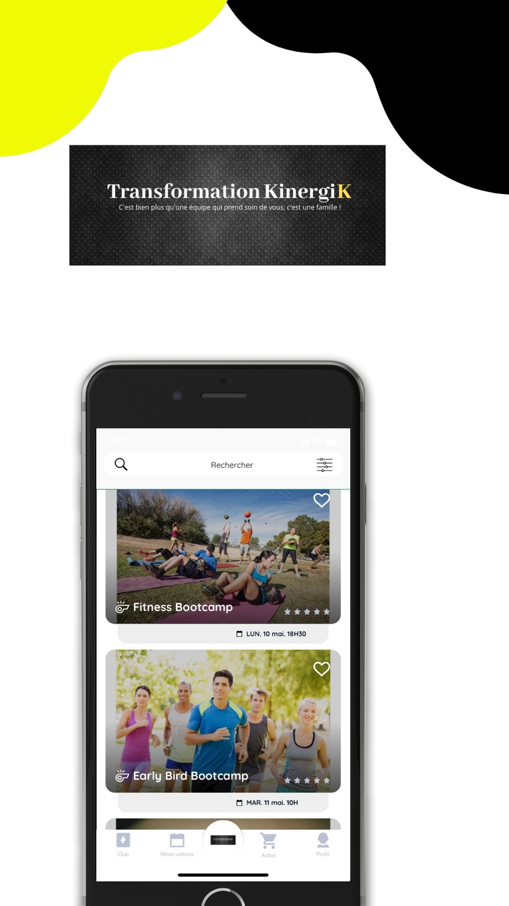 Application pour prise de rendez-vous ainsi que les achats de séances et suppléments chez Transformation Kinergik.