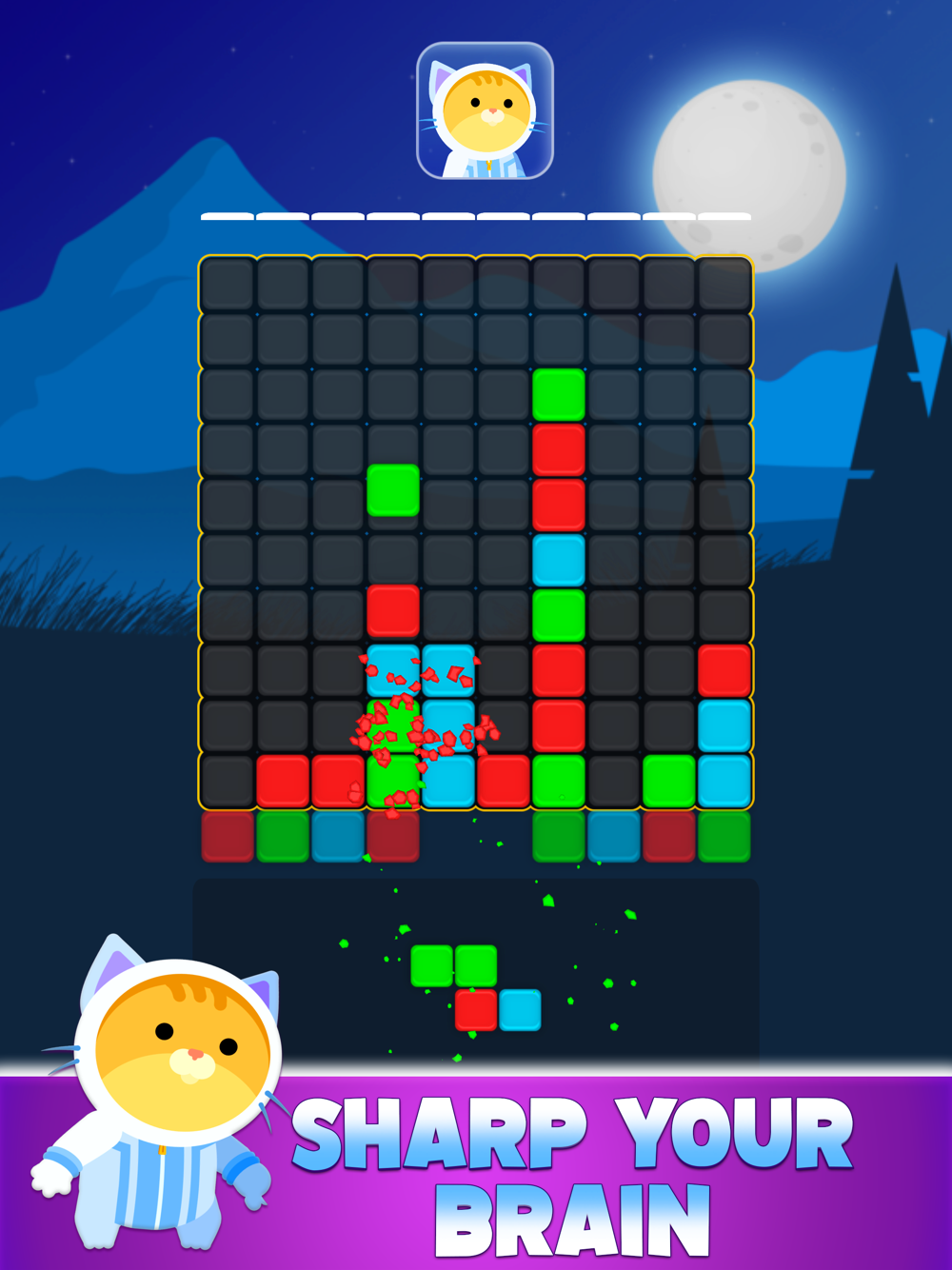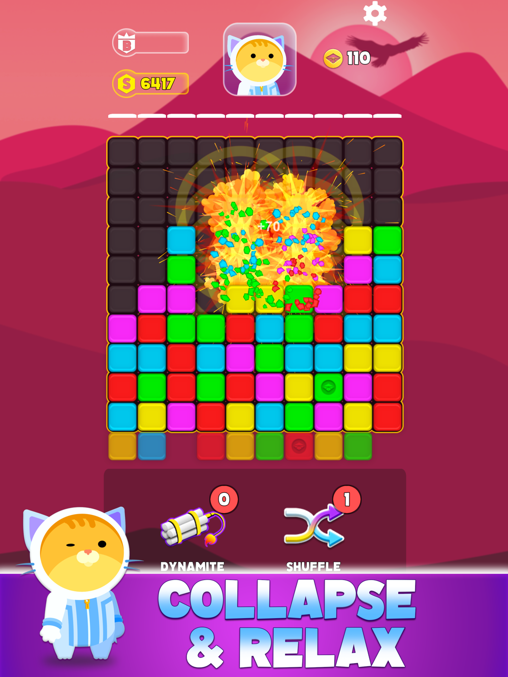 Match 3 of the same block colors and blast them to achieve high scores.