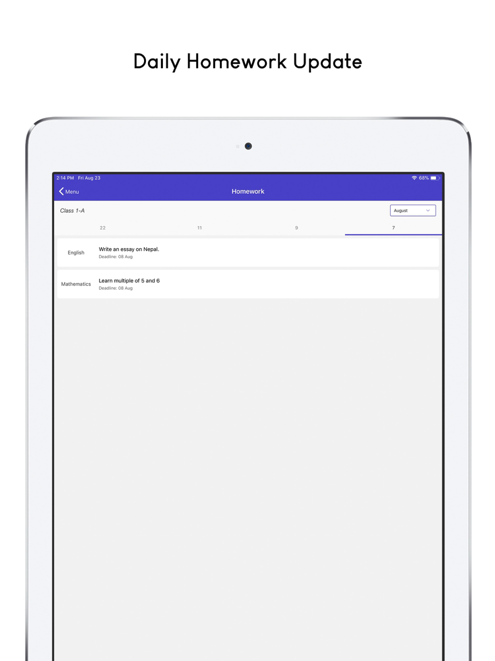 - Assignment Update to view daily assignments .