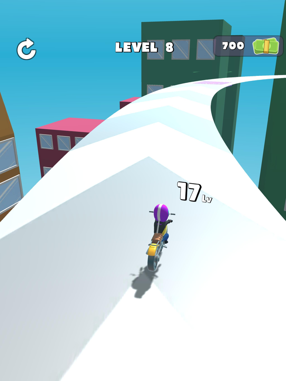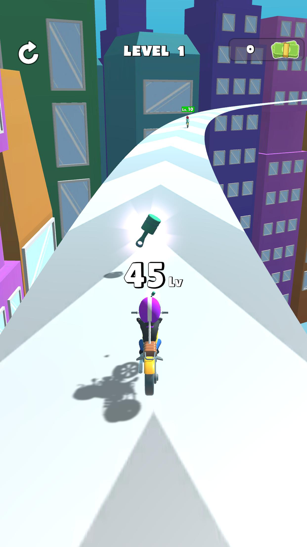 Are you ready to be the king of the roads? Collect pistons and smash motorcycles, reach the highest level and have the best motorcycle!