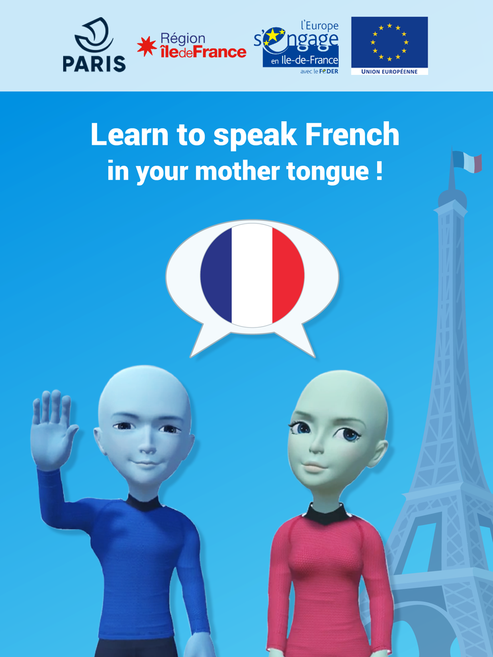 Basic-Français was developed to teach the basics of French in partnership with the City of Paris and the „Ile de France“ region, with some European co-financing.