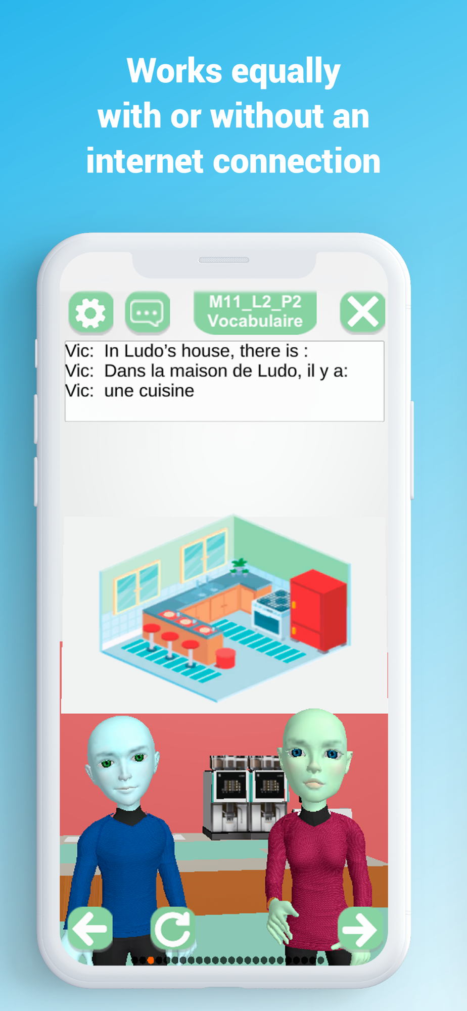 Basic-Français is an App which guides you through your first steps in the process of learning French. Ludo and Vic were created to represent all the peoples of this World and to promote gender equality. They let you discover French through dialogues (in French) which cover many aspects of daily life. There are also many pictures that will help you to increase your vocabulary