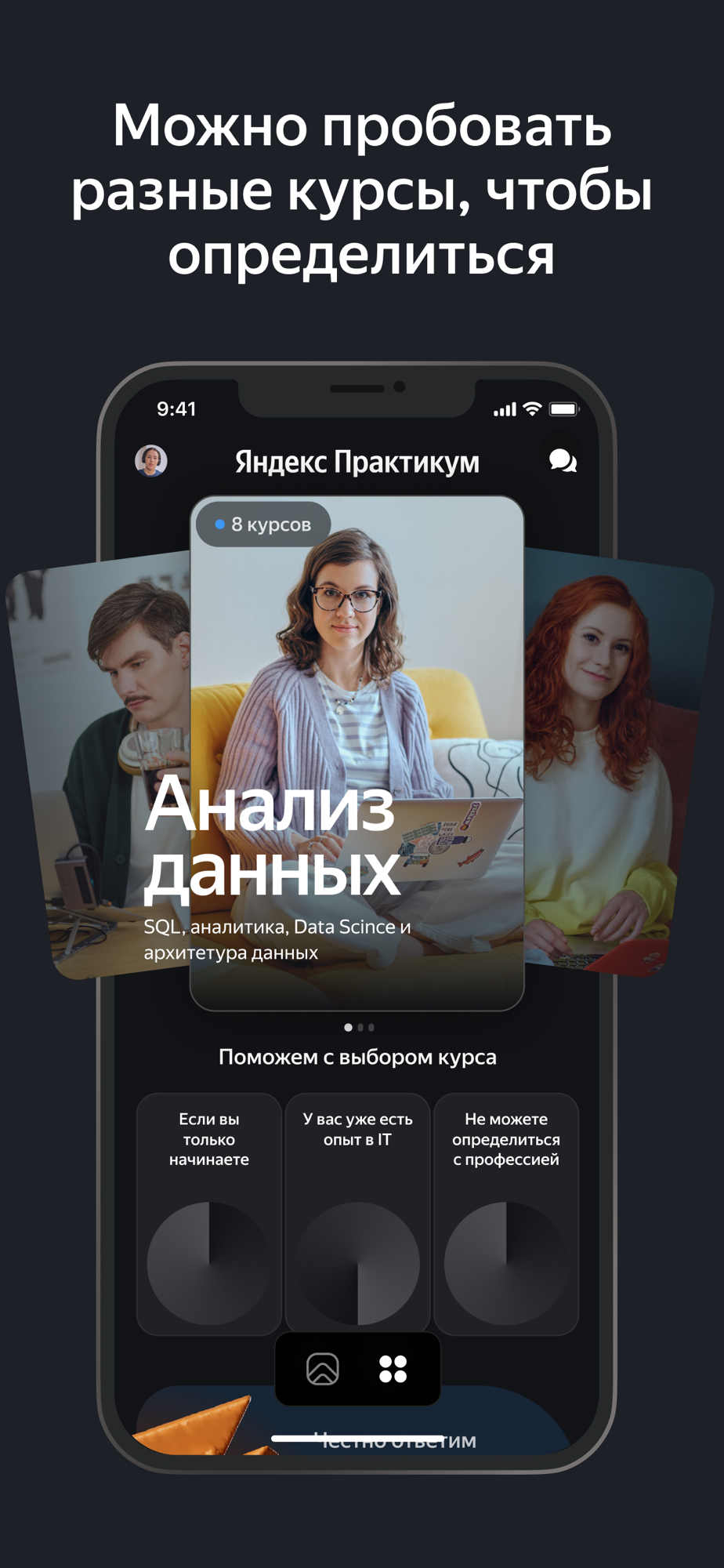 В приложении Яндекс Практикум можно пройти обучение новой профессии: разработчик на java или Python, специалист по маркетингу и графическому дизайну.