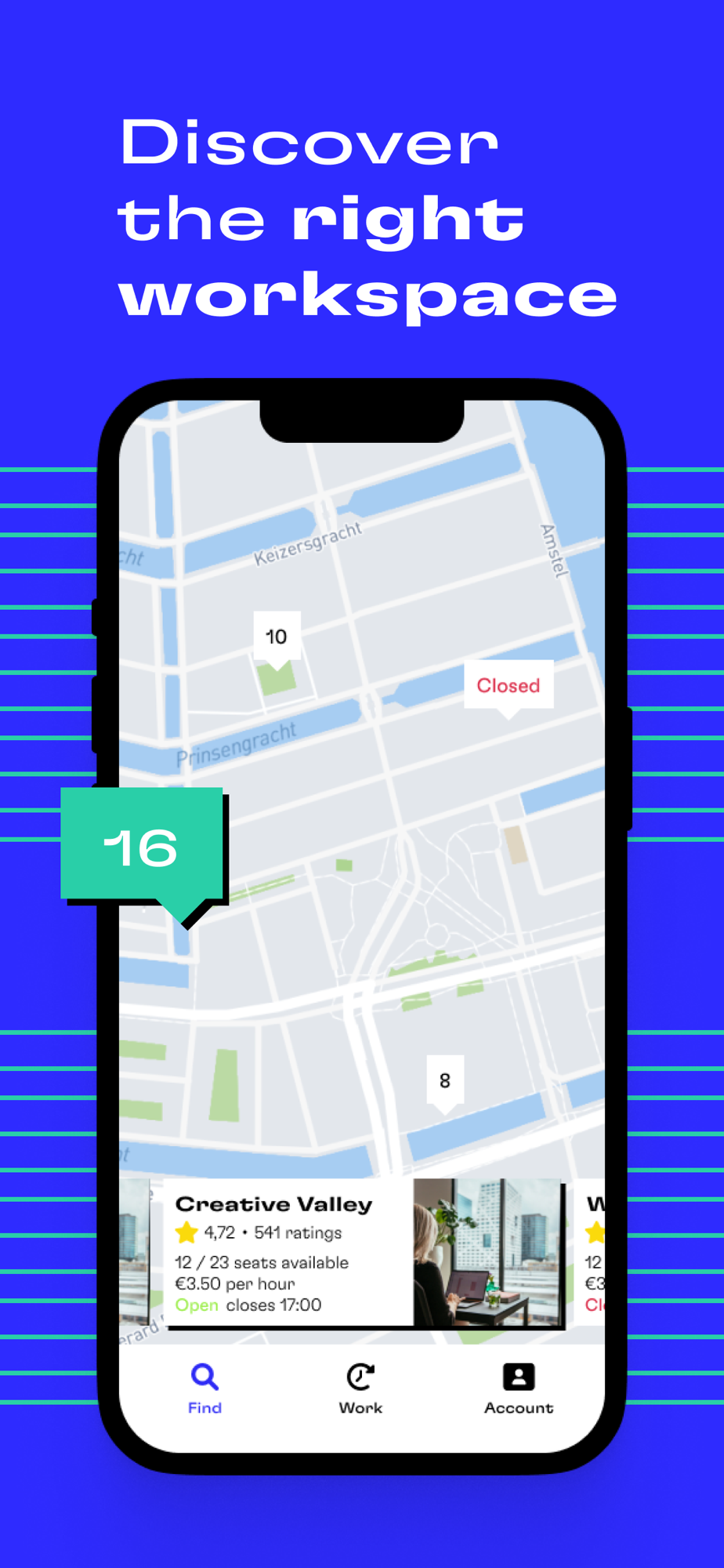For you, it’s as easy as one, two, three. Discover the right workspace near you, check-in by scanning the QR-code at the entrance and pay as you go.