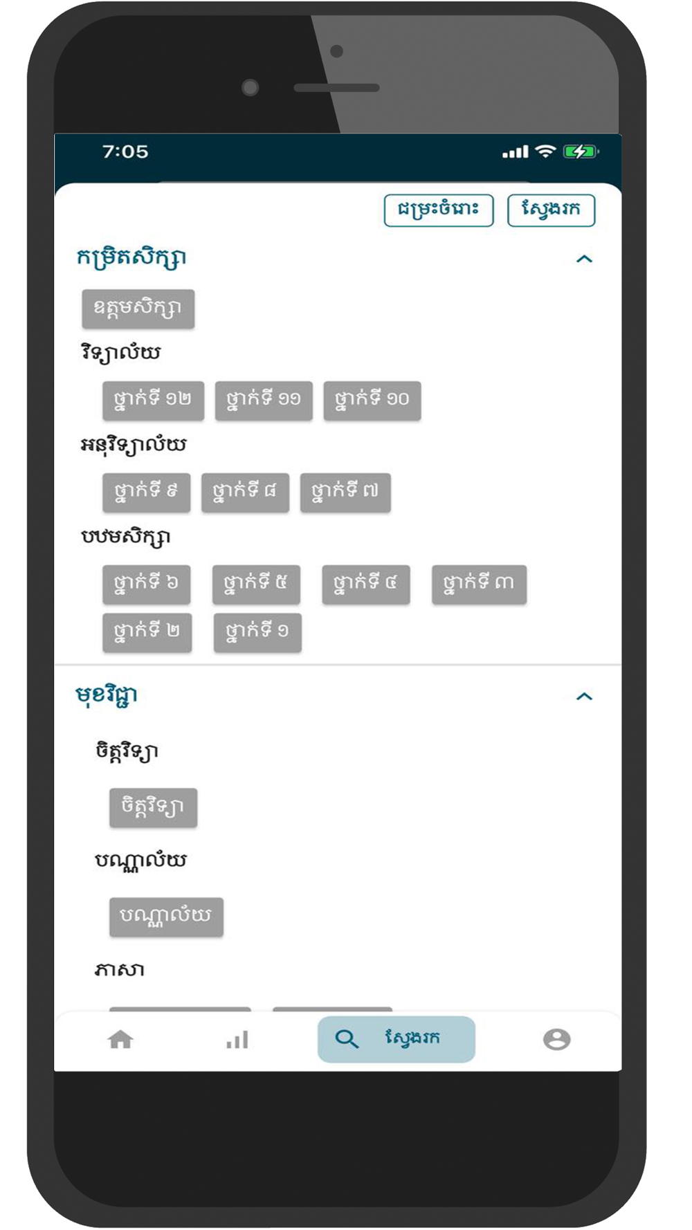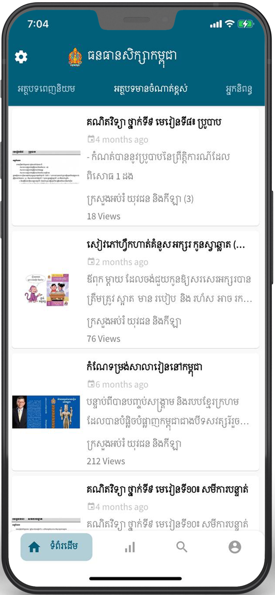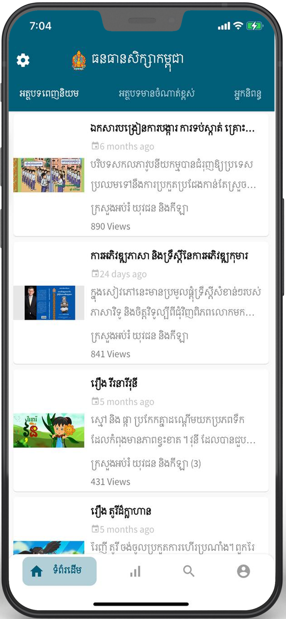 This app offers you a wide range of digital materials that can be helpful and useful for teachers/students as well as for the Cambodian public in general. The materials present include interactive multimedia, posters, digital lesson plans and video clips, as well as background documents from MoEYS and links to other websites to support access to knowledge.