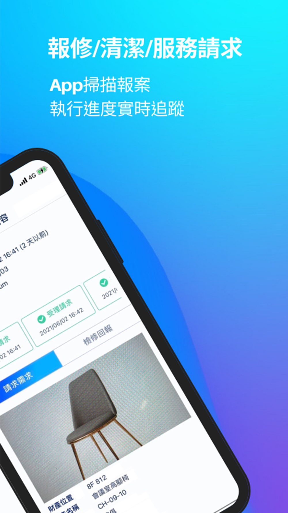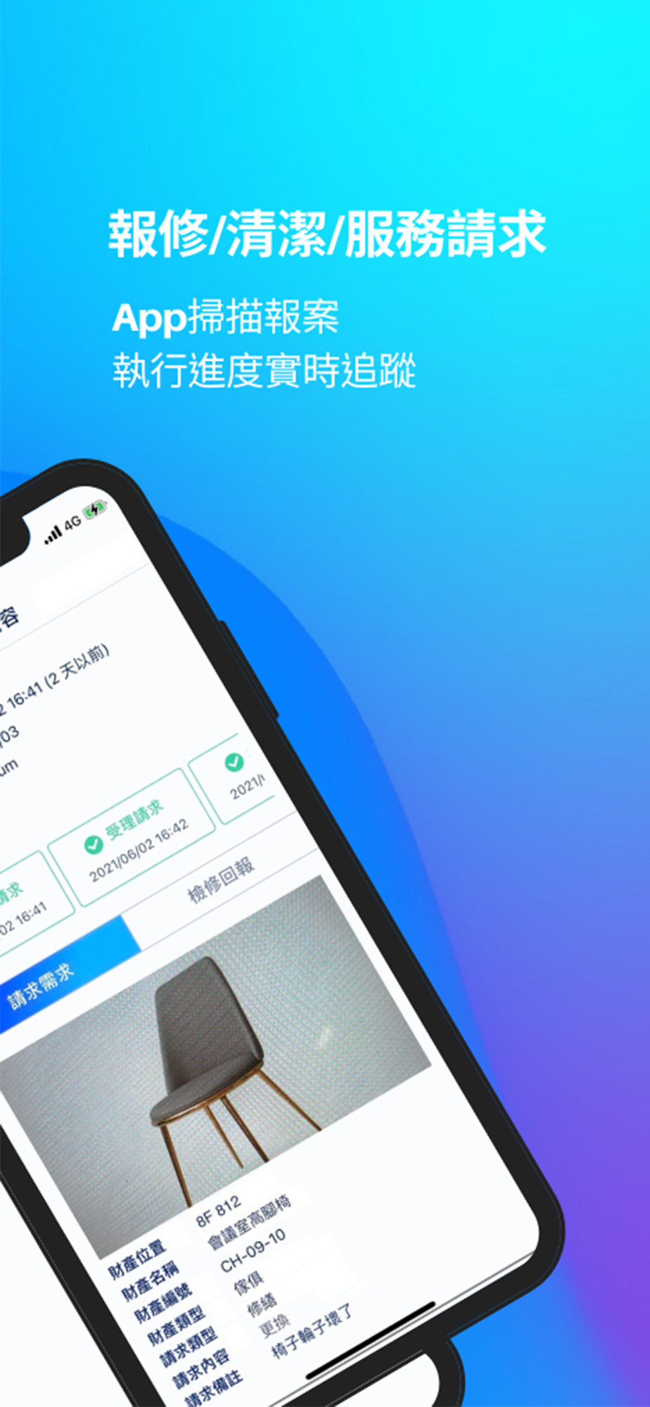 同時可串聯建築中央管理系統、連結後端維運管理(設備報修/機電保養/預警偵測)等,於設施發生異常時自動派發工單,主動為租戶進行檢修及維護,達成大樓整體數位轉型之目標。